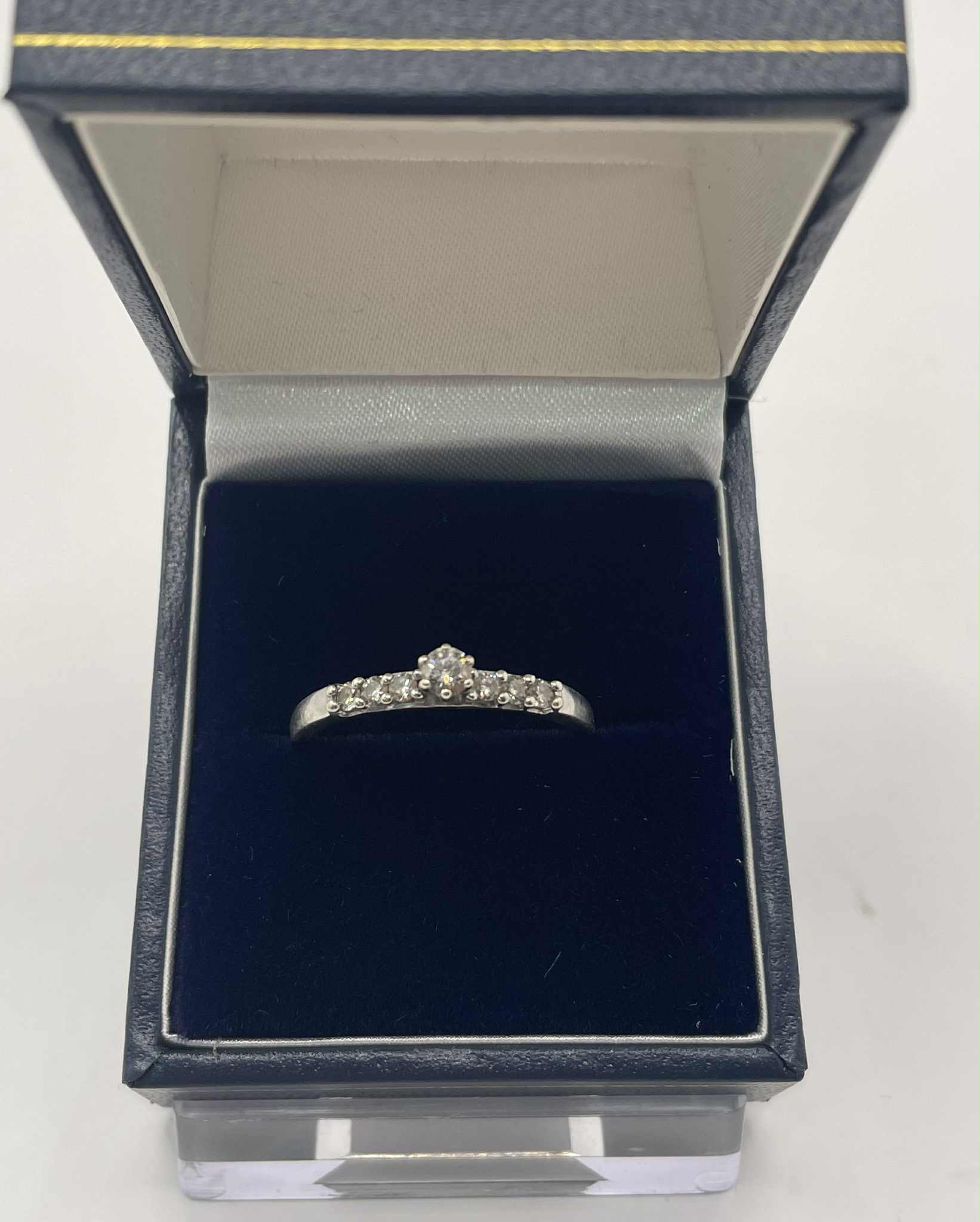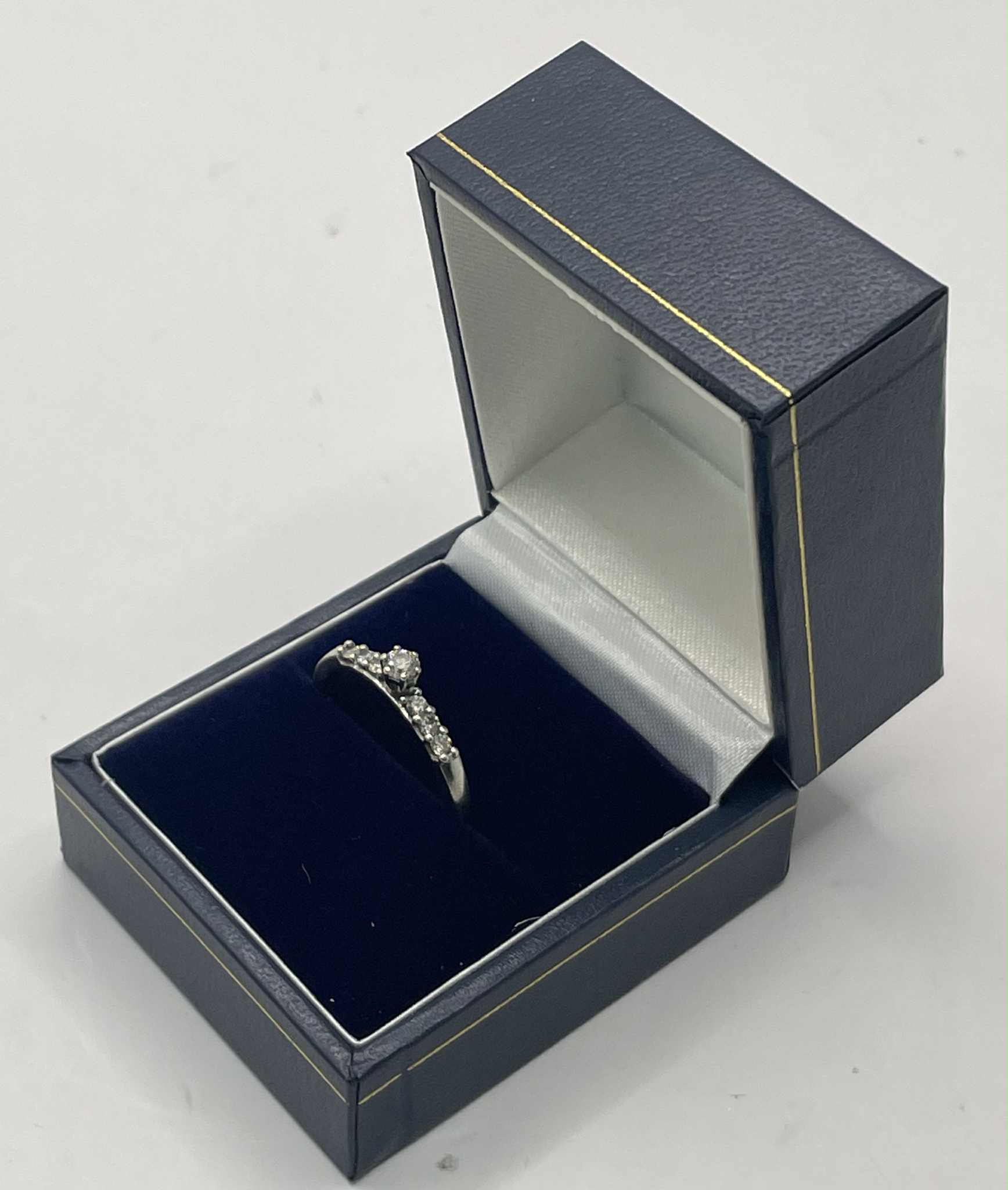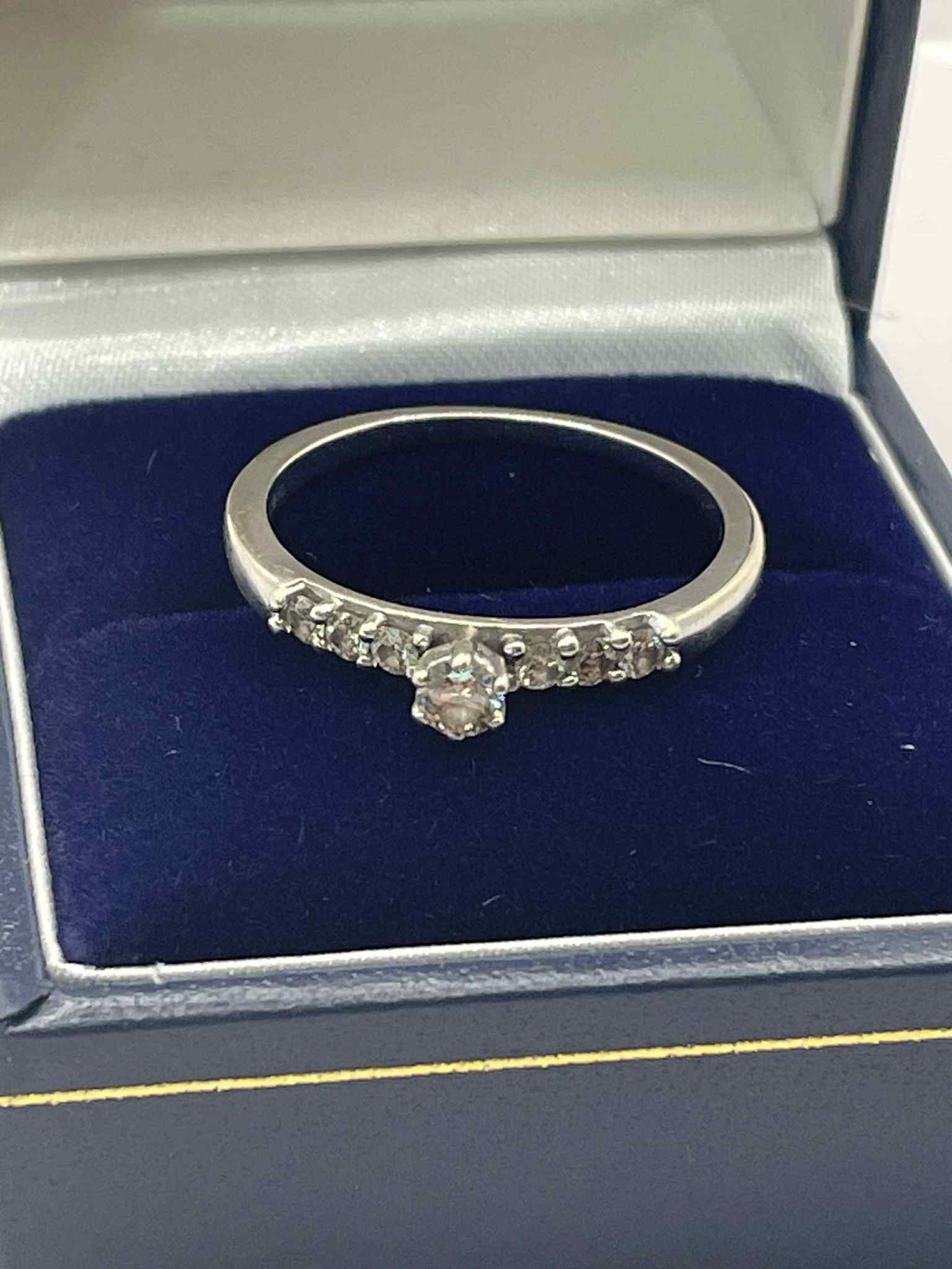 9ct White Gold Ring with clear stones Size Q Comes boxed Good condition Approx weight - 2.3g