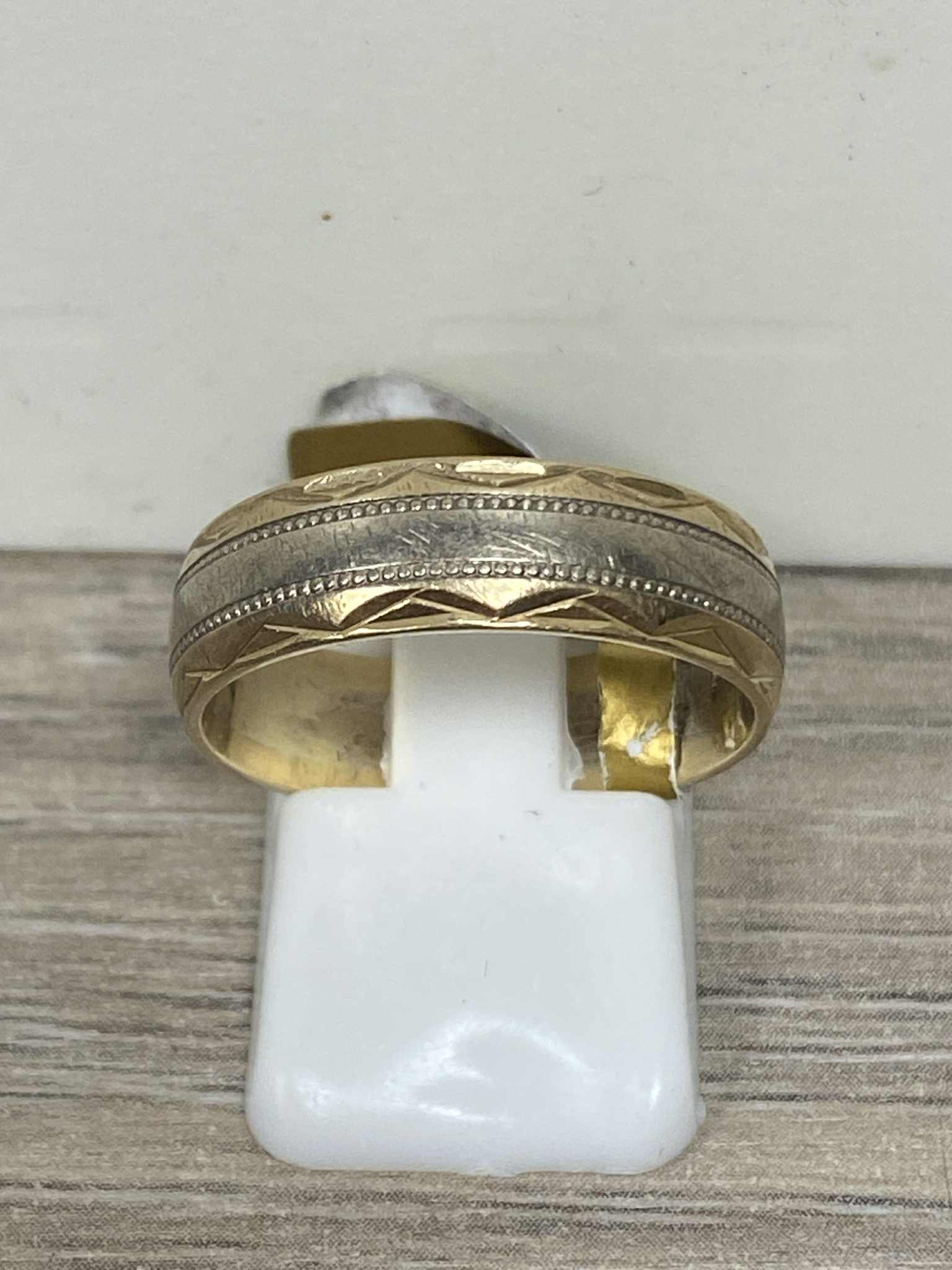 9ct Yellow And White Gold Ring (Size R) Apx 4.6g