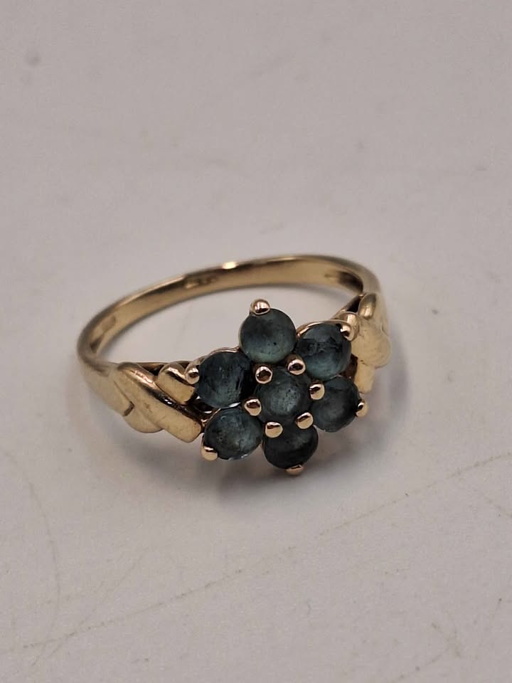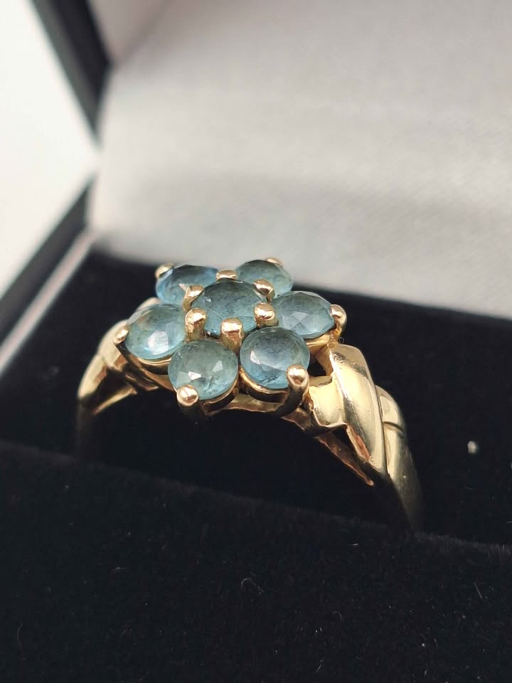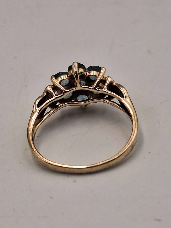 9ct Yellow Gold Blue Topaz Cluster Flower Ring - 2.85 Grams - Size Q