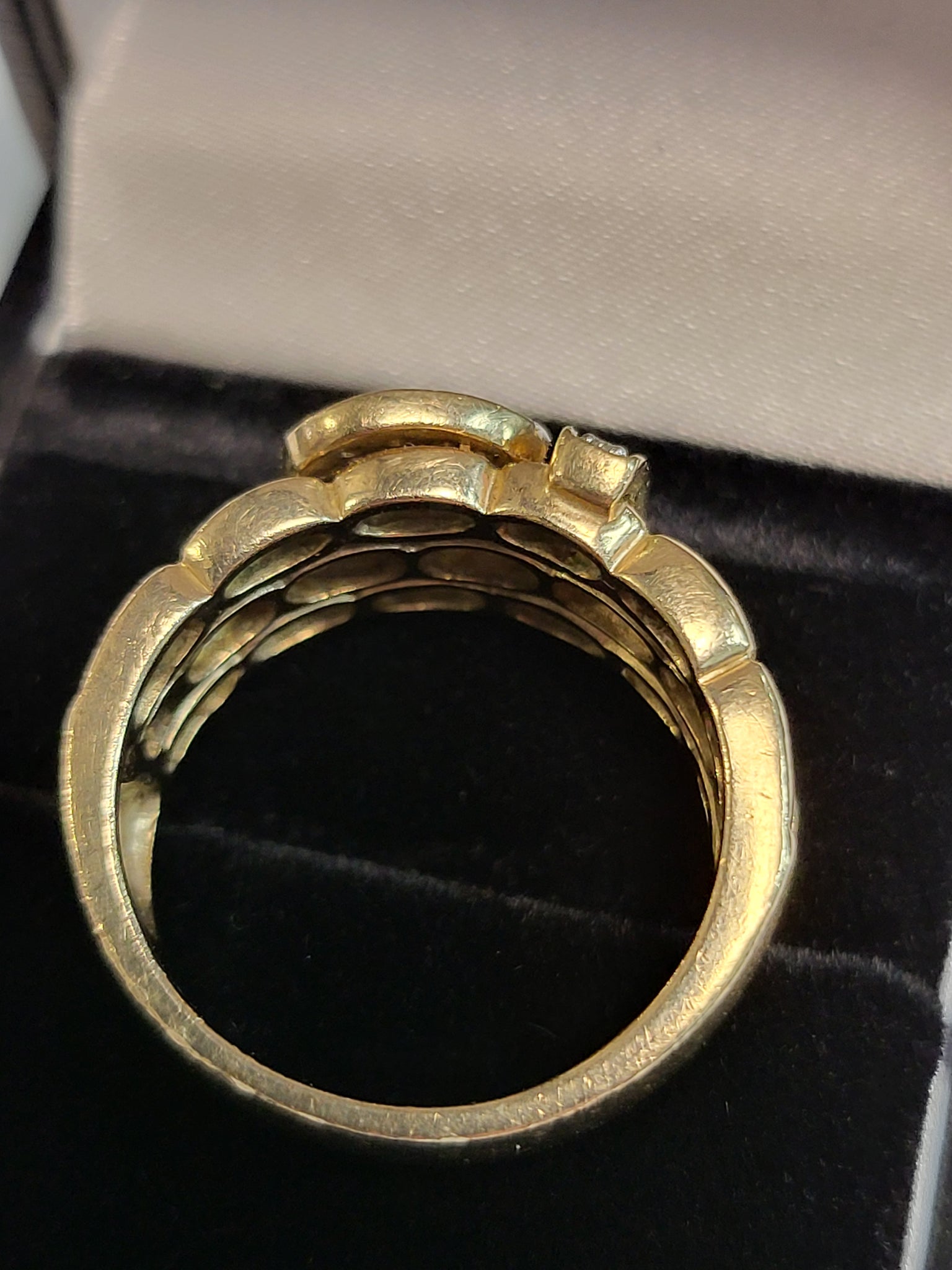 9ct Yellow Gold Buckle Ring with Clear Stones. - Size S - 11.15g