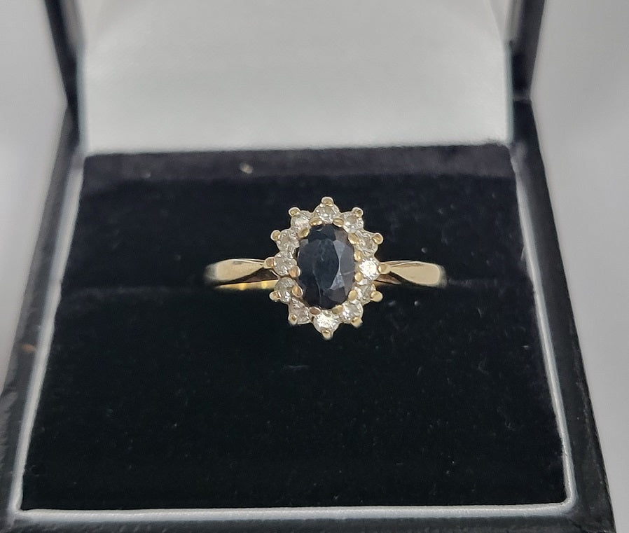9ct Yellow Gold Ring With Black And Clear Stones - 1.4G - Size N. Hallmarked
