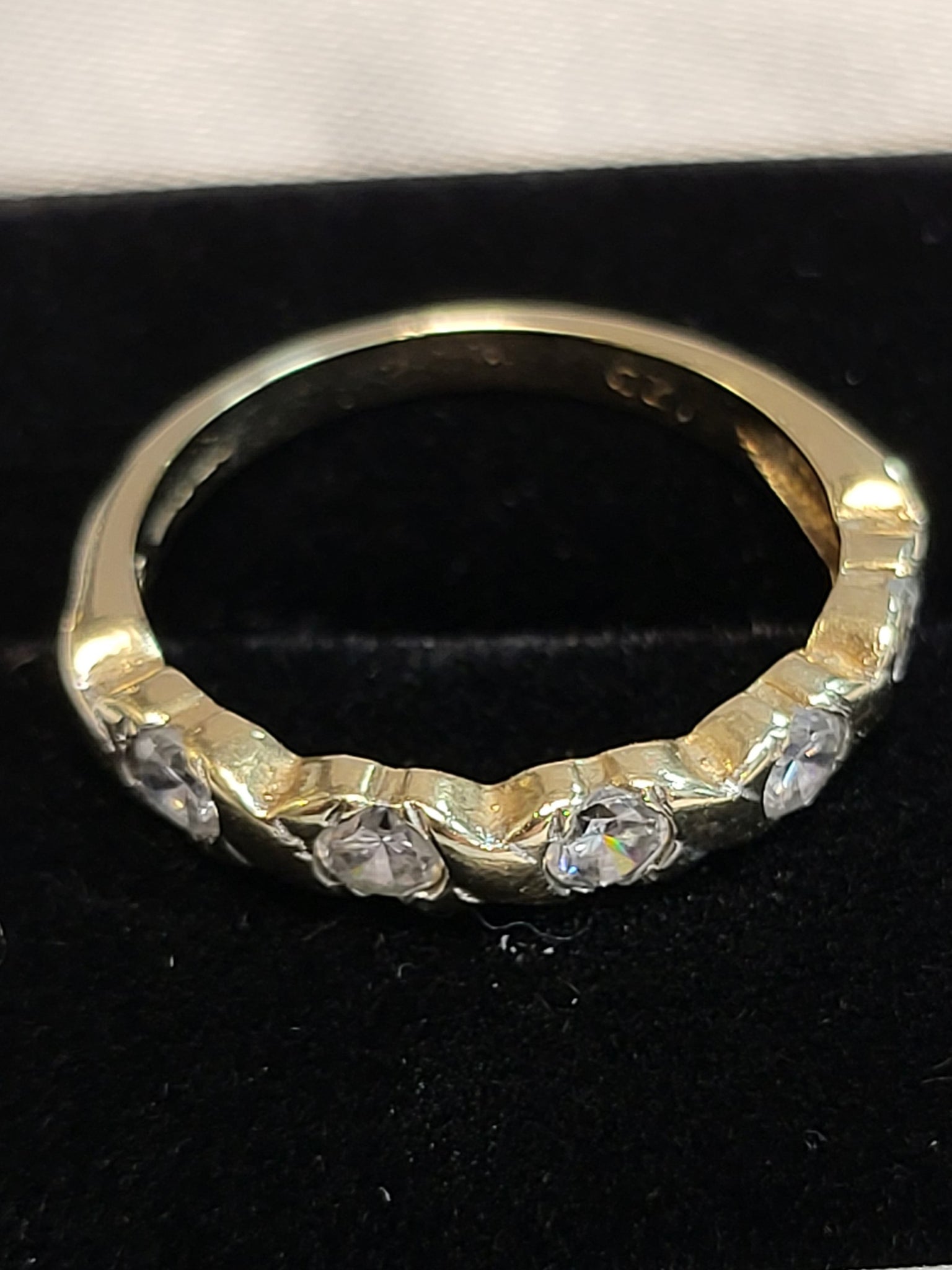 9ct Yellow Gold Ring With CZ Stones - Size O - 2.24G