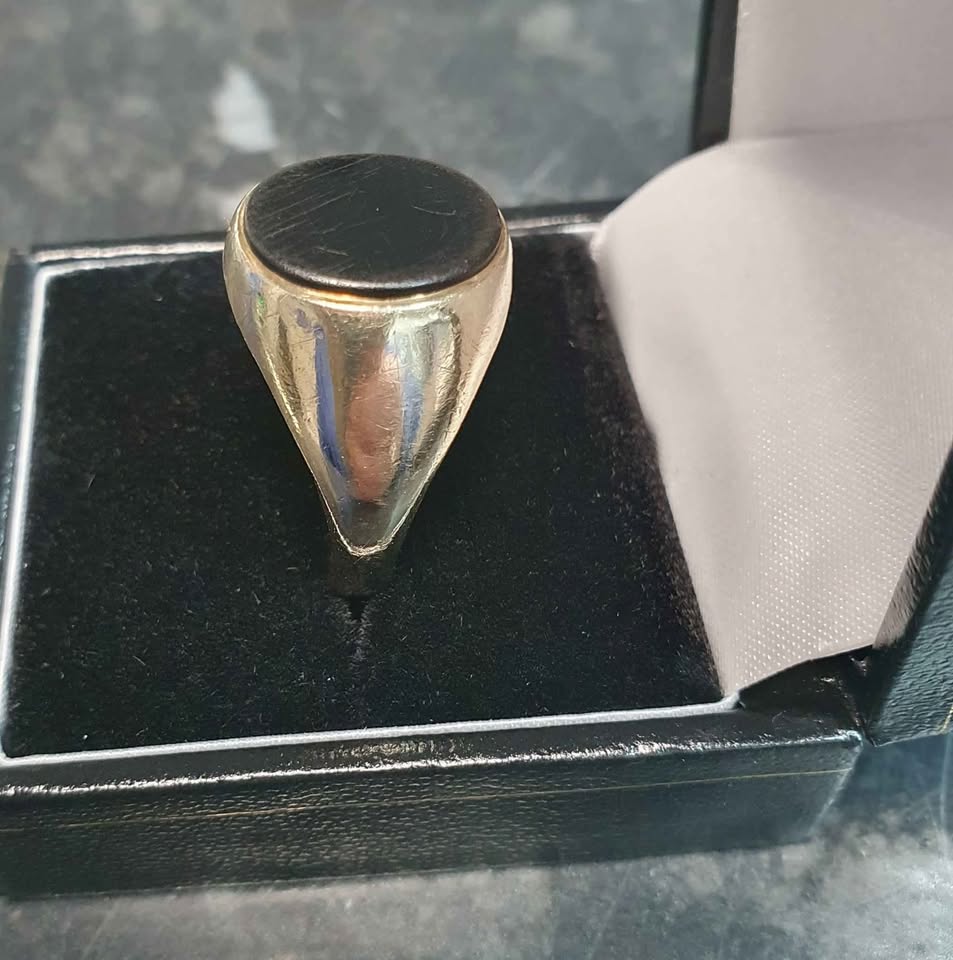 9ct Yellow Gold Ring with Onyx Stone - Size V - 6.4g