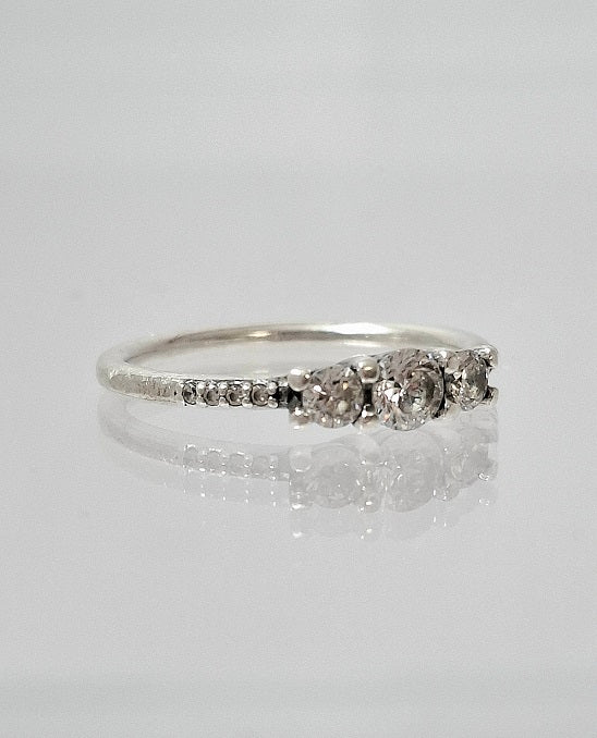 Lend a touch of sparkle to every occasion. Crafted from sterling silver, the classic design features a trio of brilliant-cut cubic zircon, surrounded by tiny shimmering stones.