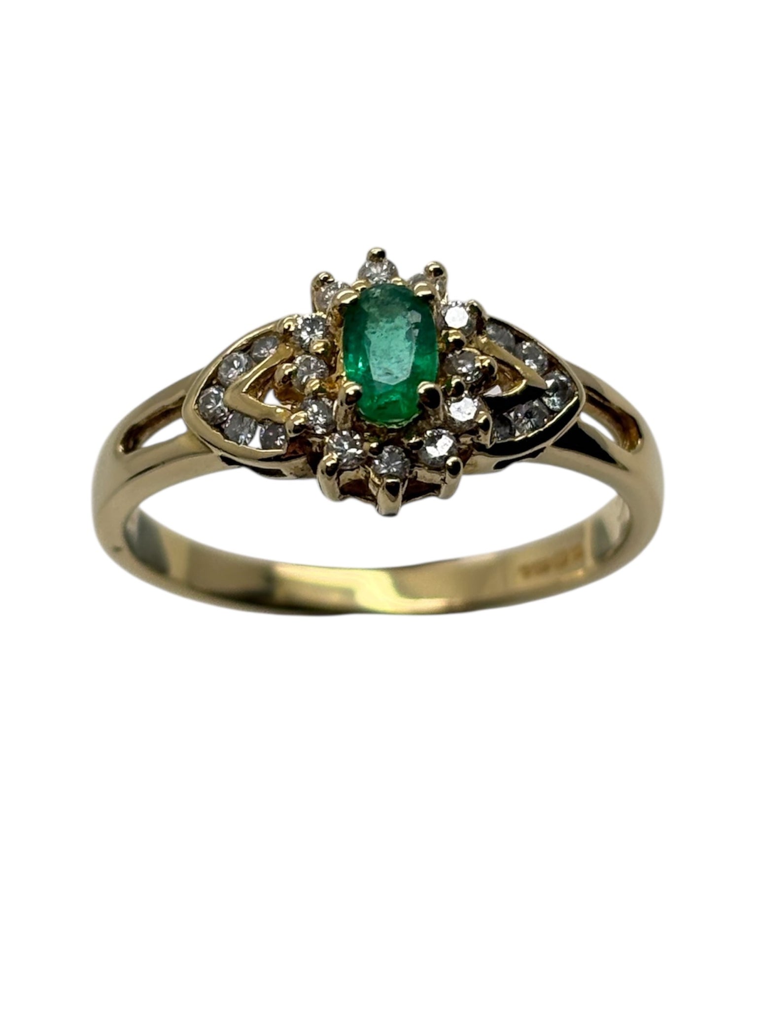 Yellow Gold Diamond Emerald Ring - 18ct - 3.5g - Size P