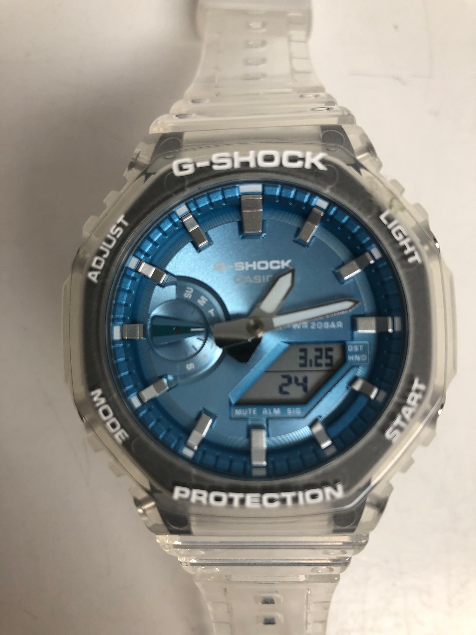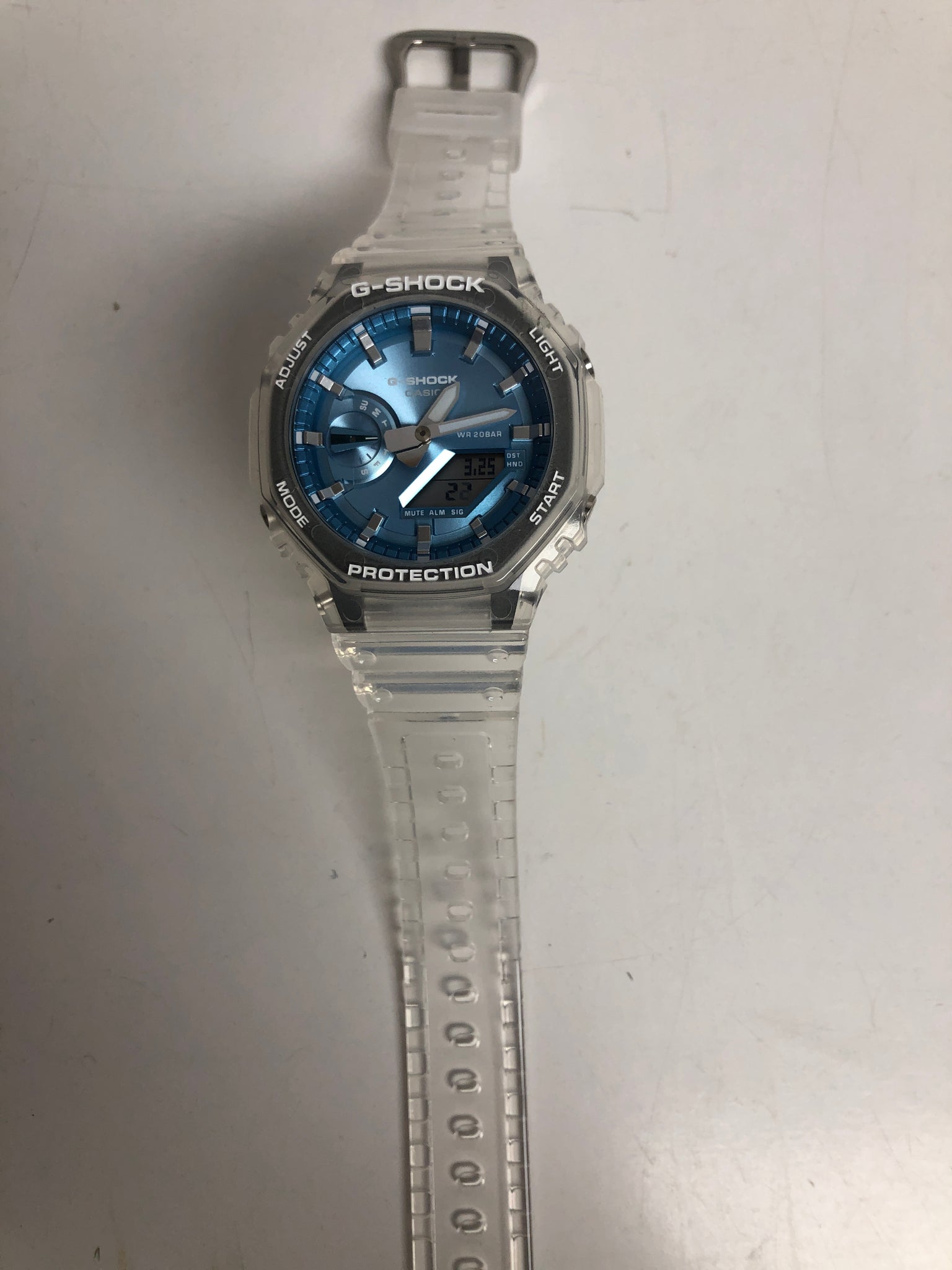 Casio G-Shock clear watch with blue face - 24 Month Warranty