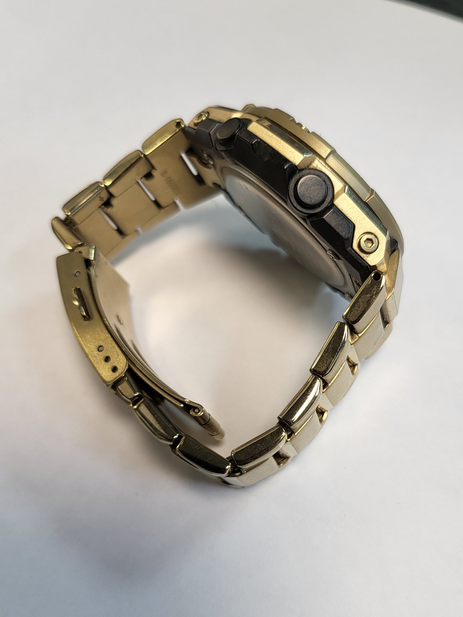 From G-SHOCK comes a new slim G-STEEL model with an innovative design made possible by a thin module and carbon core guard structure. The thin module of the GST-B500 is made possible by downsizing components without sacrificing Bluetooth® functions, solar power capabilities or other functions. A carbon core guard structure makes this the thinnest model in the G-STEEL series (as of March 2022) while maintaining a high degree of impact resistance. The GST-B500GD-9AER has a gold coloured stainless steel band and bezel with a sophisticated black and gold face. These new G-STEEL series models combine metal and resin to create a collection of tough and fashionable timepieces.