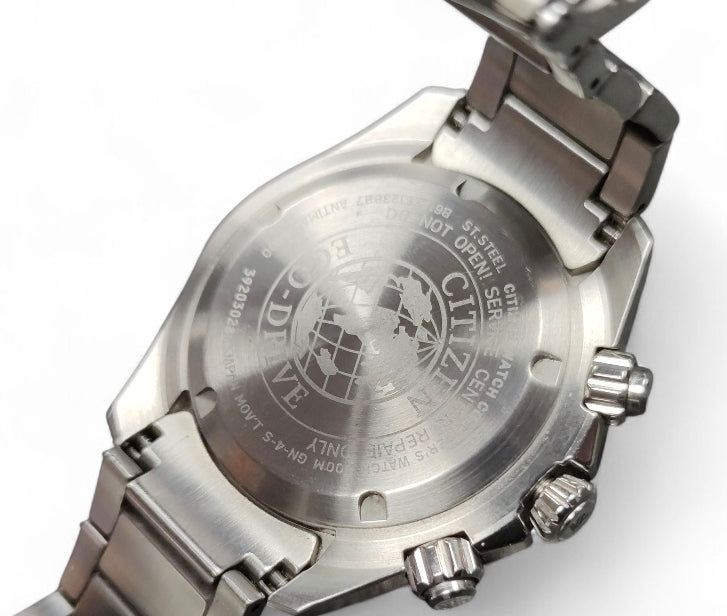 Proof that a dive watch can be fun and functional with the Citizen ISO-compliant Citizen Promaster Chrono Diver. With Eco-Drive technology, it is powered by light and never needs a battery, so you'll never need to open your caseback or compromise your dive again. This timepiece features a stainless steel case and bracelet with blue bezel and matching blue dial, one-way rotating elapsed time, 1/5th second chronograph, 12/24 hour time, date and water resistant to 200 metres.