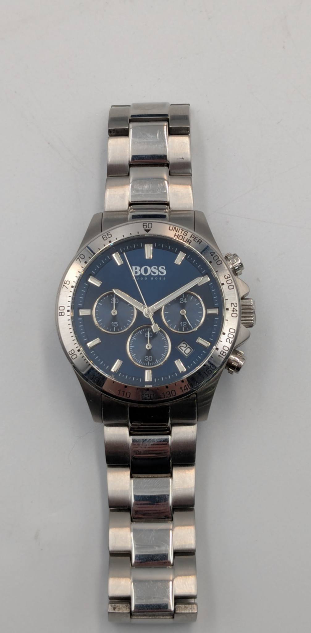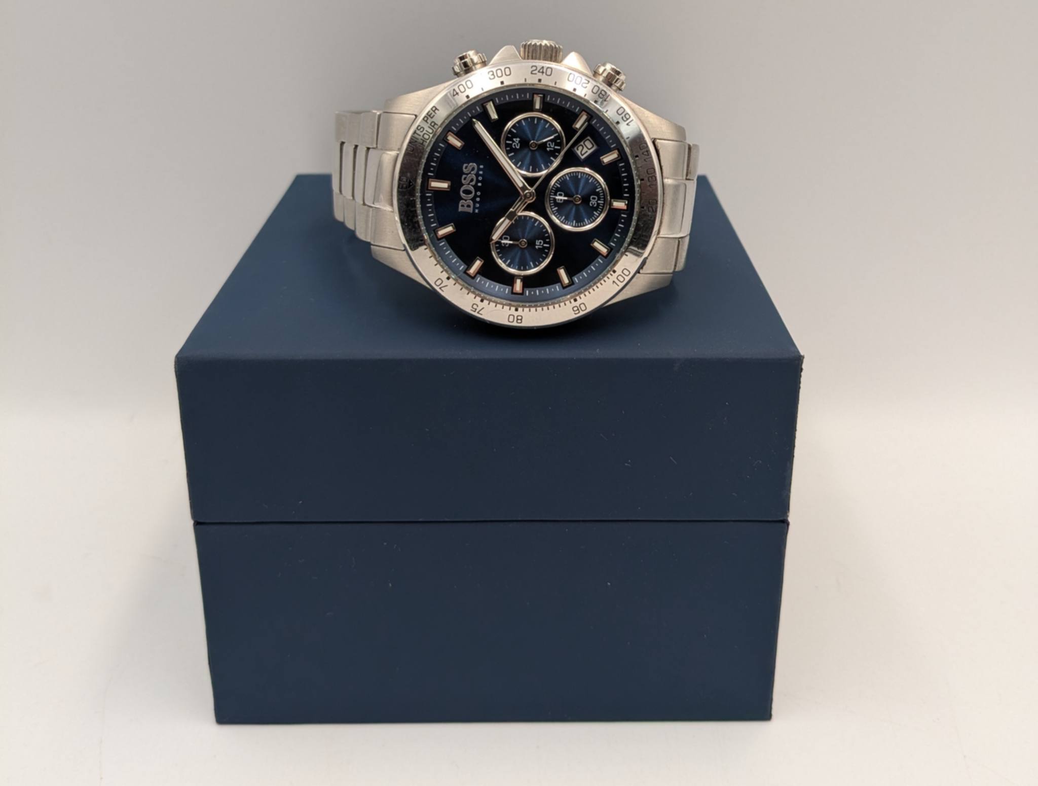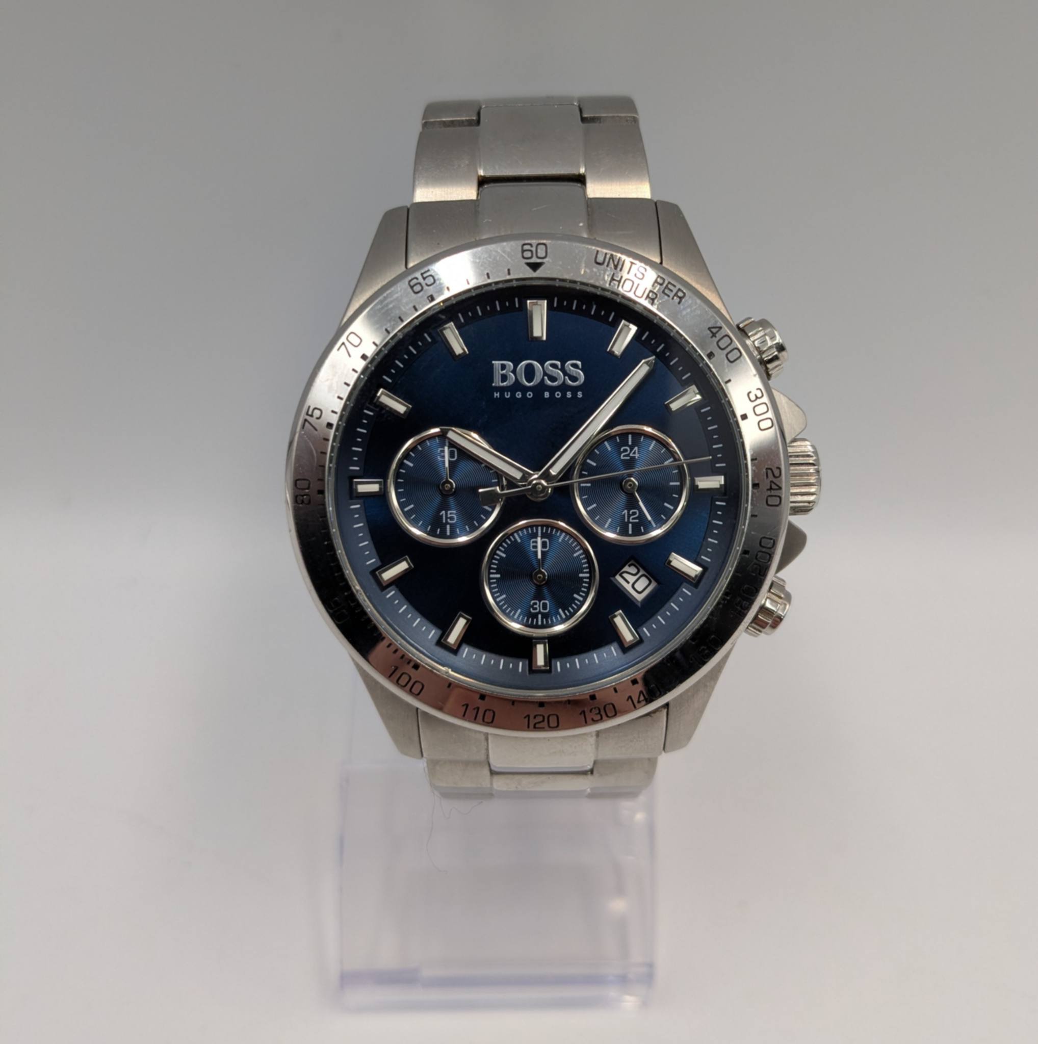 HUGO BOSS Hero HB1513755 Blue Dial Silver Stainless Steel Men Watch. Previously owned item, previous signs of use. Slight scratches to the bracelet of the watch, this does not effect the performance of the watch. Please use photos as reference.