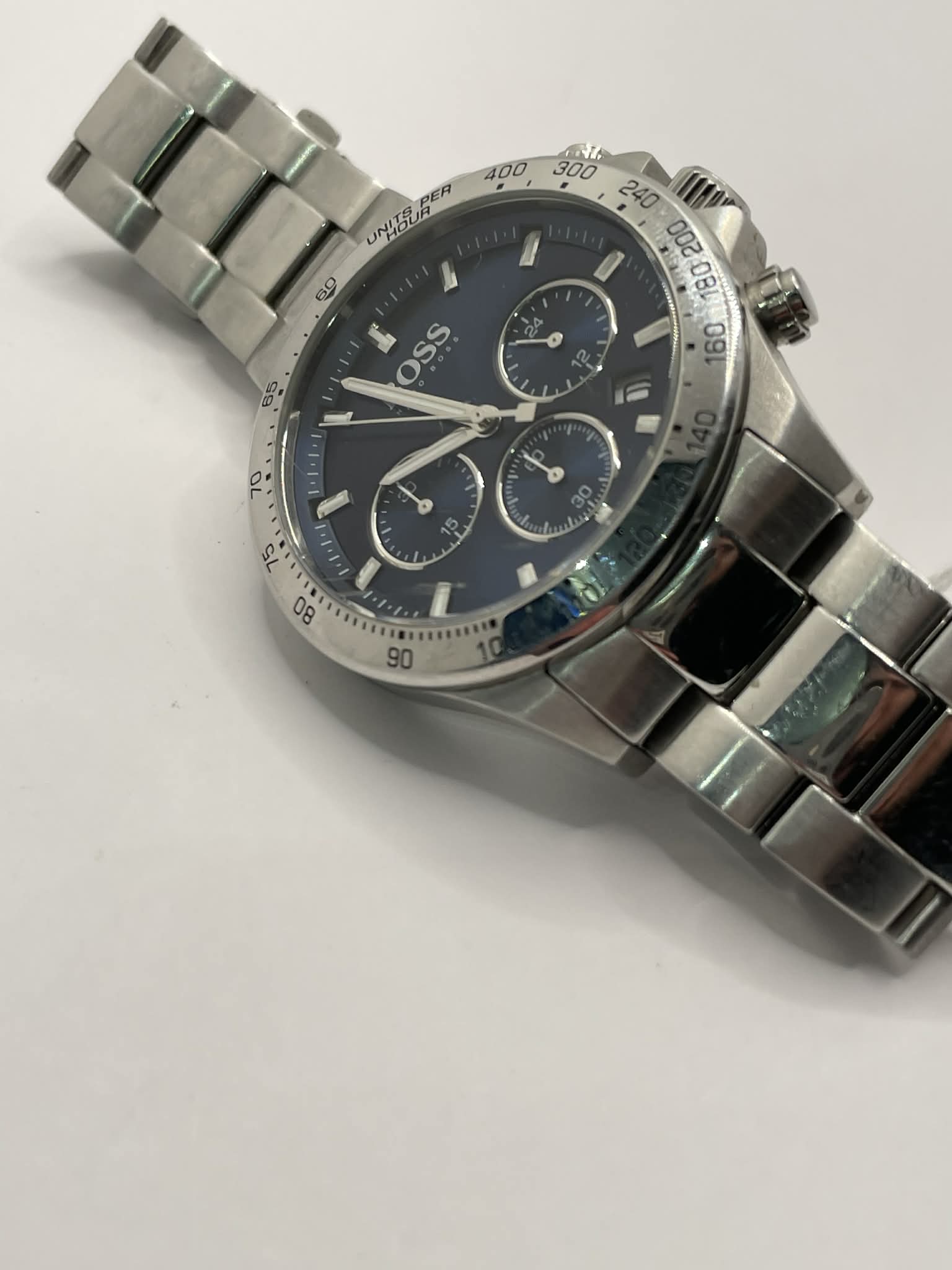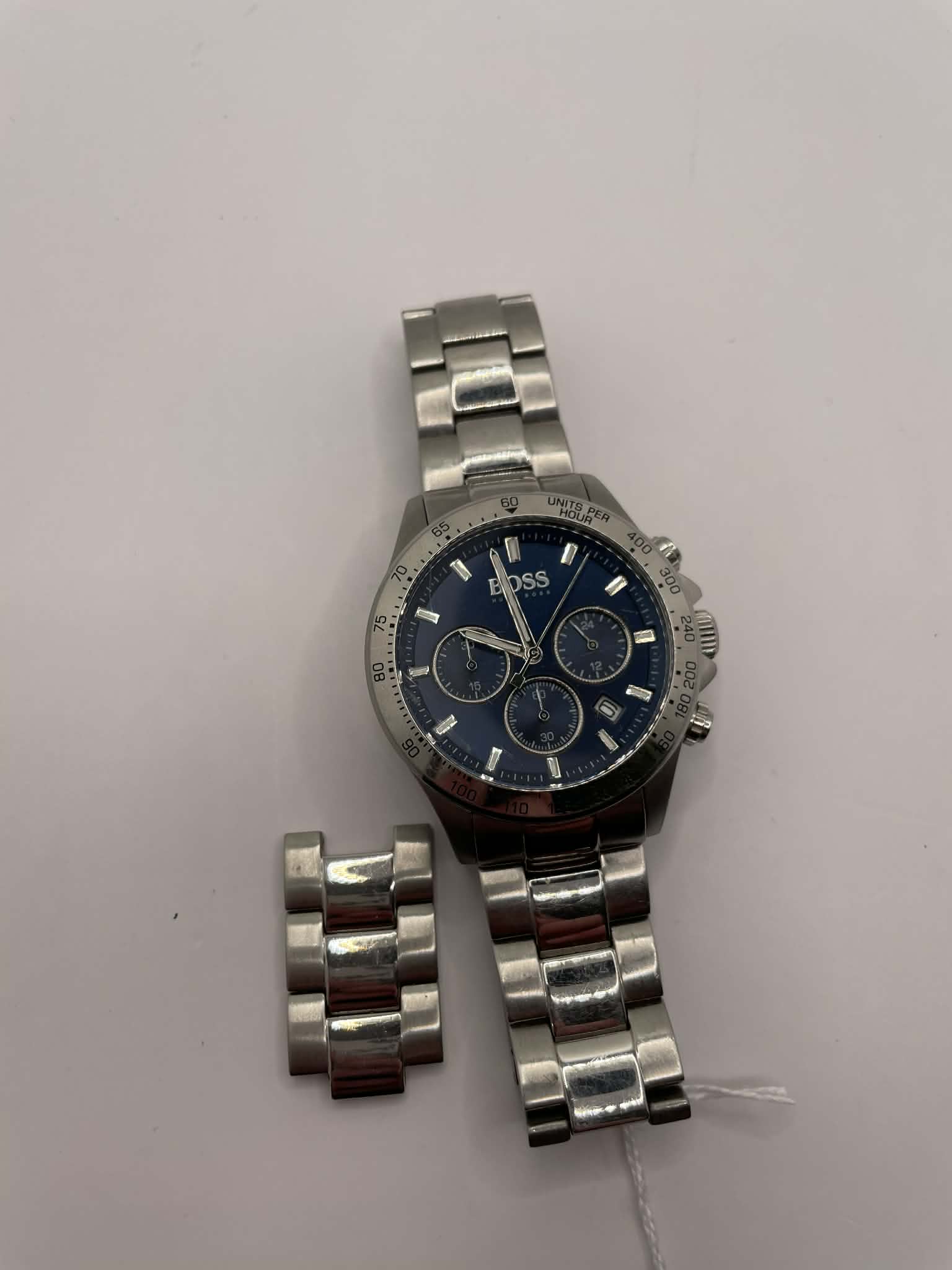 Comes unboxed Comes with 3 spare links Face does have visible scratches Some cosmetic wear on strap/dial 5ATM water resistance