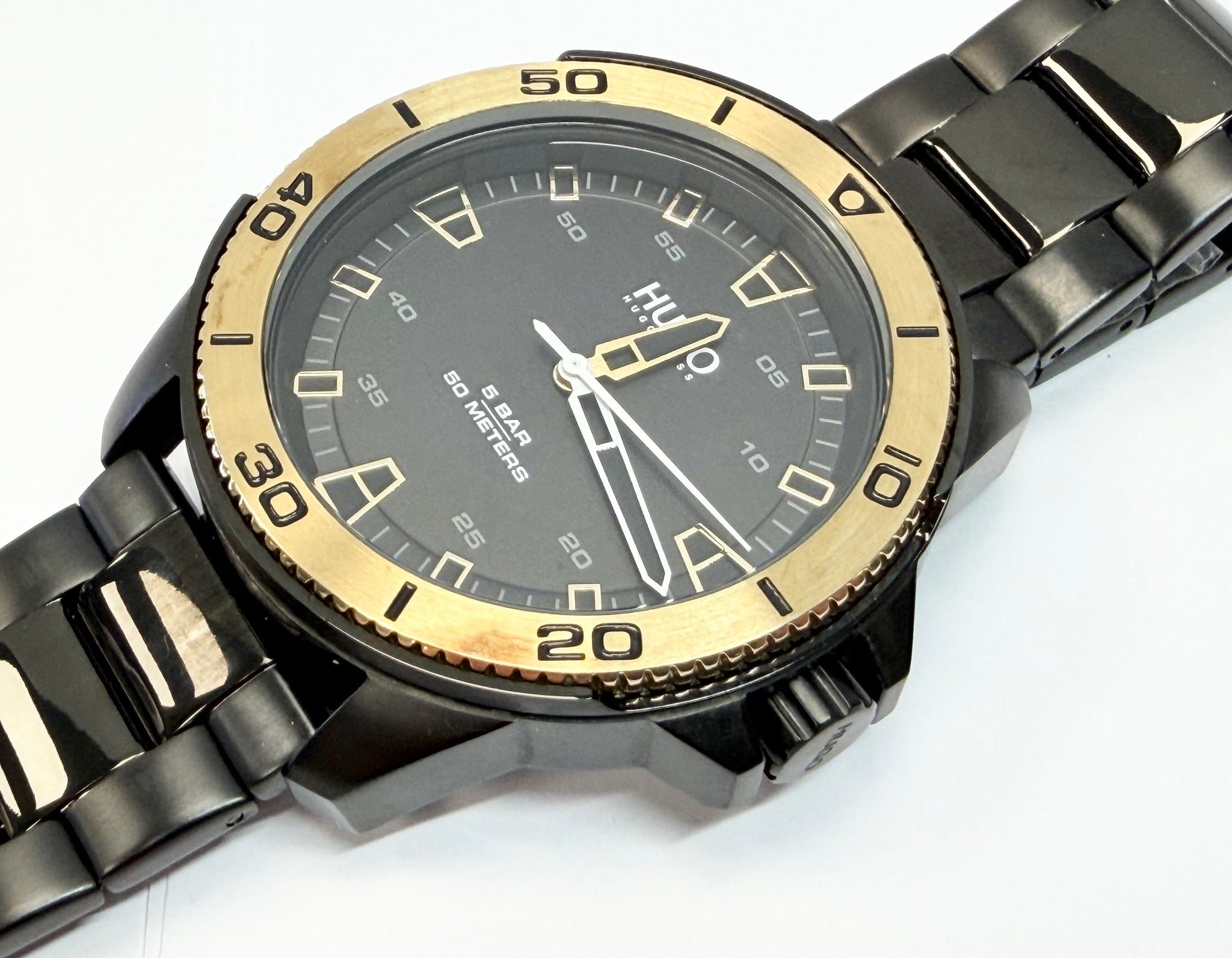 This Hugo boss street diver watch is in good condition and has the spare links in the box.