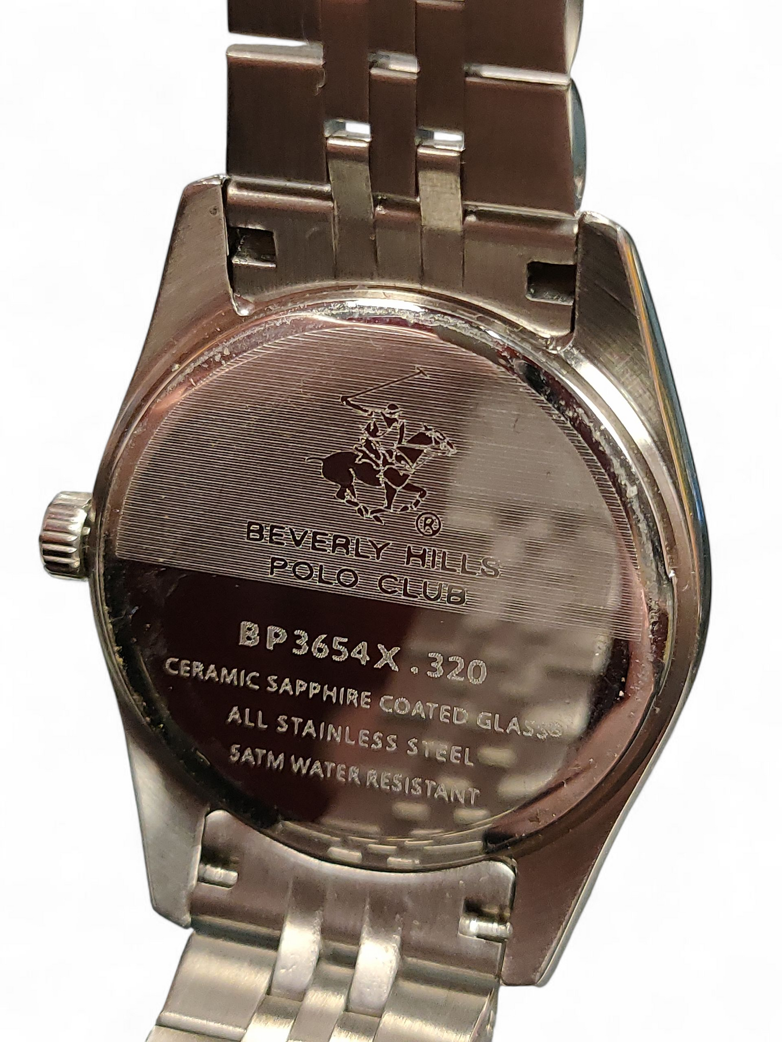 Boxed with extra links. In good condition has some light minor marks on the strap but in good working order.