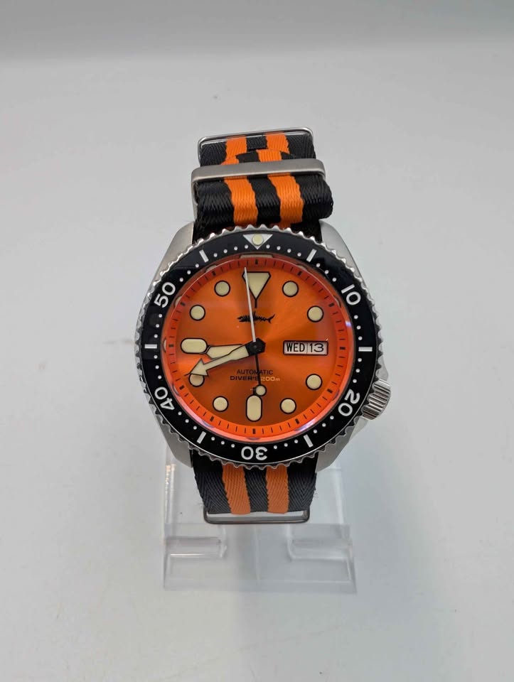 Heimdallr Sharkey SKX Automatic Divers Watch With Day/Date - Orange Dial - Unboxed With NATO Strap