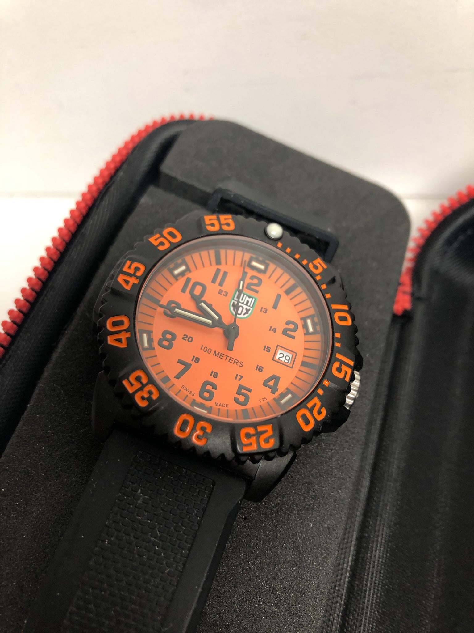 Known for their agility and fluid movements, the dynamic Sea Lion serves as inspiration for the Luminox G Sea Lion collection. A streamlined 44mm CARBONOX case is durable and light weight, with 100 meters water resistant. The perfect companion for water activities, this watch is unique thanks to its protected crown and dive bezel. A Black PU strap with a stainless steel signature buckle compliments a stand out orange dial. Proven Luminox Light Technology lighting system provide self-powered readability in any situation. "Always Visible", for up to 25 years.