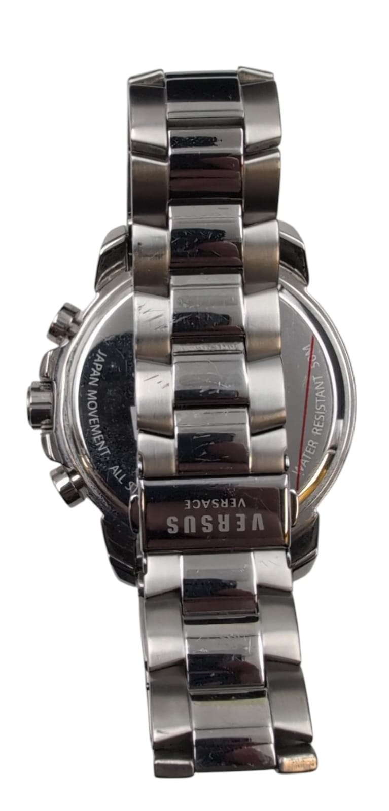 Versus Versace Battery Operated Stainless Steel Links Strap Watch. Is in good condition, links have scratching, front face in great condition, complete with box and manual. Used. collection and delivery available.