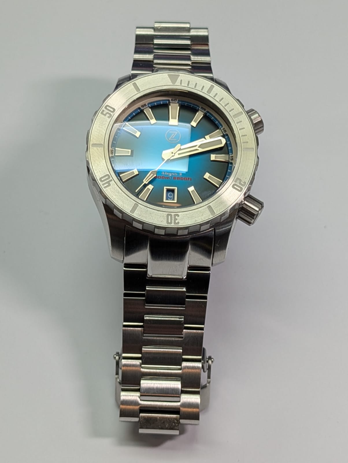 HERE WE HAVE A ZELOS ABYSS 3 DIVERS WATCH. THIS IS 080/150. 3000M/9800FT THE WATCH COMES BOXED AND IN GOOD CONDITION. IT INCLUDES EXTRA LINKS AND AN EXTRA STRAP. FOR ANY QUERIES PLEASE CONTACT OUR PRESTON STORE DIRECTLY MON-SAT AT 01772 204889