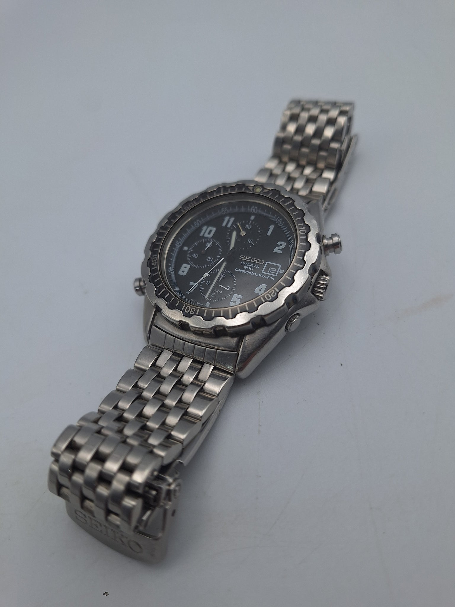 Seiko 7T32-7D19 mens quartz black dial stainless steel 1990s watch BOXED