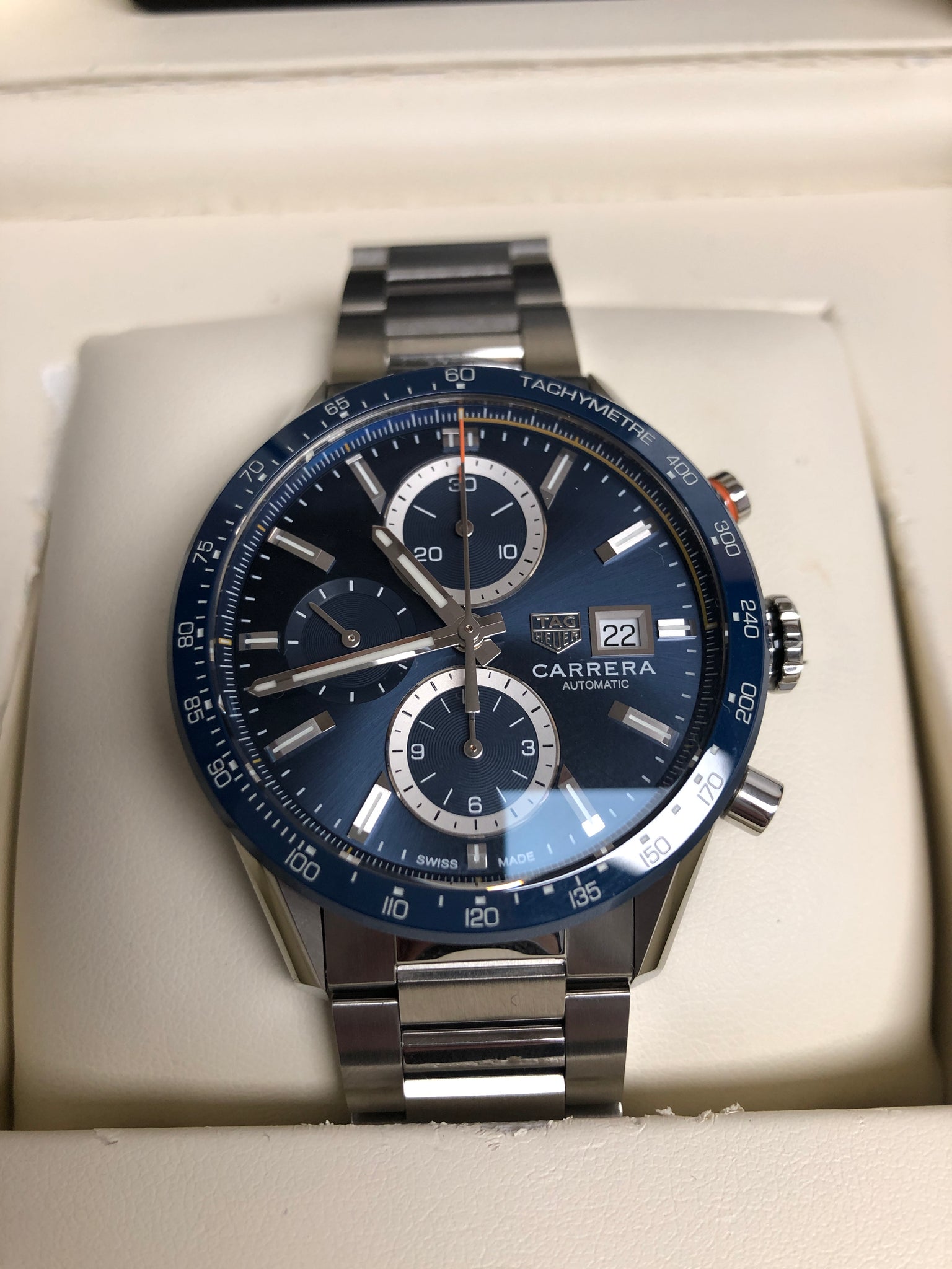 The TAG Heuer Carrera CBM2112-0 (part of the CBM2112.BA0651 reference family) is a luxury automatic chronograph inspired by motor racing heritage. It is characterized by its signature blue sunray dial and reliable Calibre 16 movement. boxed, in excellent condition, with authenticity guarantee, 24 month warranty