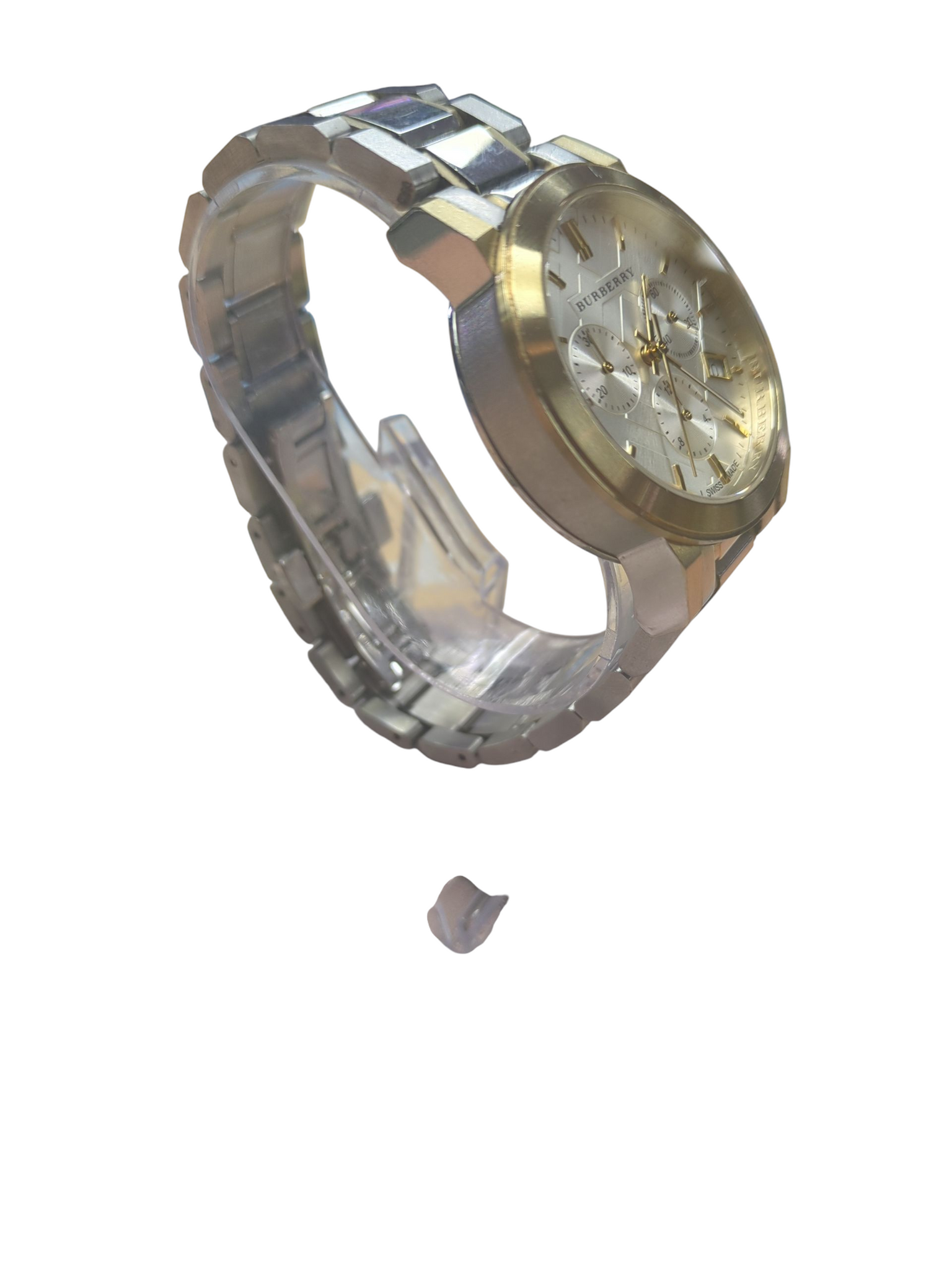 HERE WE HAVE A BURBERRY WATCH. ***** THE WATCH IS IN FAIR CONDITION WITH SCRATCHES ON THE BAND FROM GENERAL USE. ***** FOR ANY QUERIES PLEASE CONTACT OUR PRESTON STORE DIRECTLY MON-SAT ON 01772 204 889