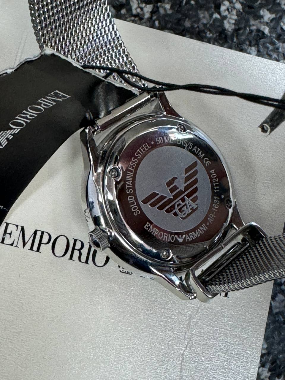 Emporio Armani AR1631 Ladies Watch Metal Strap, Mother of pearl face. As new condition, complete with tag (still attached) booklet, box, and display box. Call into store to view!
