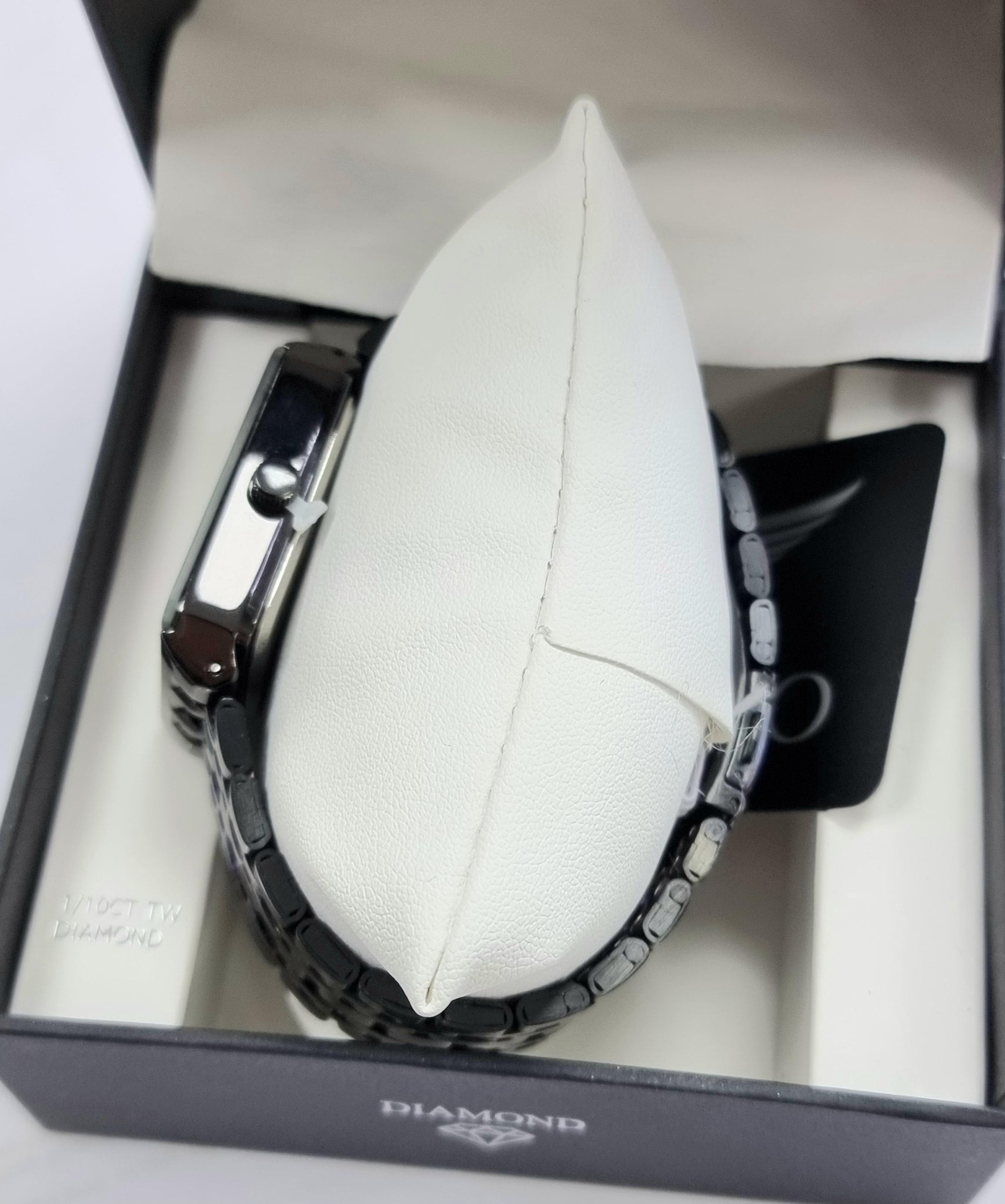 NIB Gianello Mens / Unisex Diamond Watch Carat 1/10 Gunmetal Strap & Face