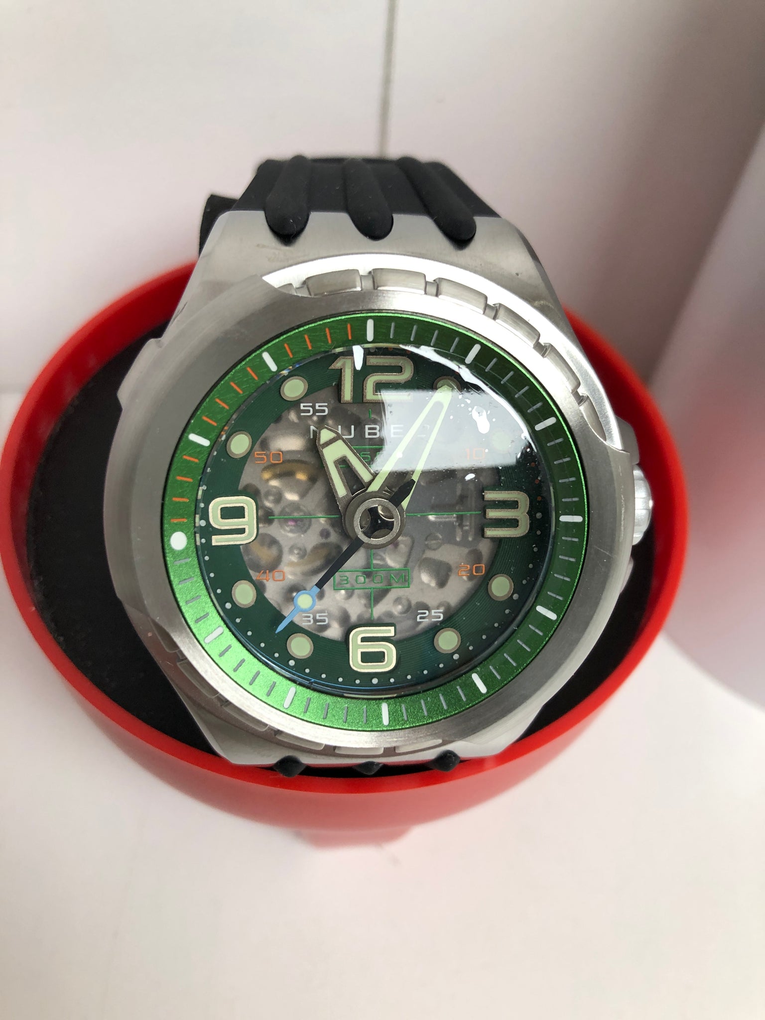 The Alvin submersible, named after geophysicist Allyn Vine, is a US Navy-owned research vessel. Since 1964, it has enabled researchers to dive up to 6,500m deep, covering nearly 98% of the sea floor. Vine's vision of using submersibles for unprecedented deep-sea research is embodied in the enduring legacy of Alvin. Movement Japan Automatic Skeleton With 3 Hands Case Material Stainless Steel Case Size (mm) 50.0 Case Thickness (mm) 20.0 Lug to Lug (mm) 50.0 Dial Colour Green Index & Luminous Applied Index Lens Anti Reflection Coated Sapphire Lens Crown Type Screw Down Band 29mm Black Silicon Strap Water Resistance 30 ATM Watch Weight (g) 220