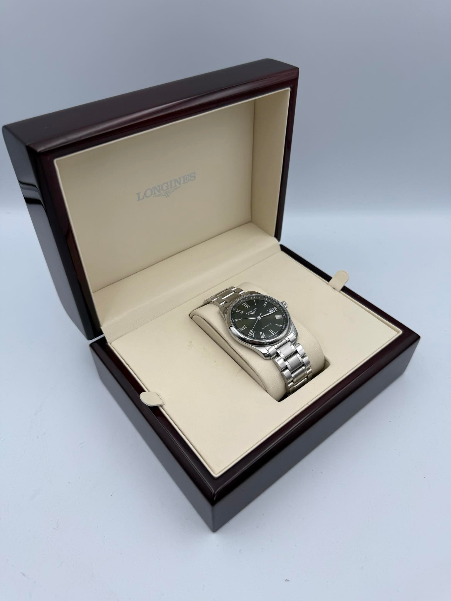 LONGINES MASTER COLLECTION,40MM, AUTOMATIC WATCH (SWEEPING HAND),GREEN DIAL, STAINLESS STEEL BRACELET, IN ORIGINAL BOX