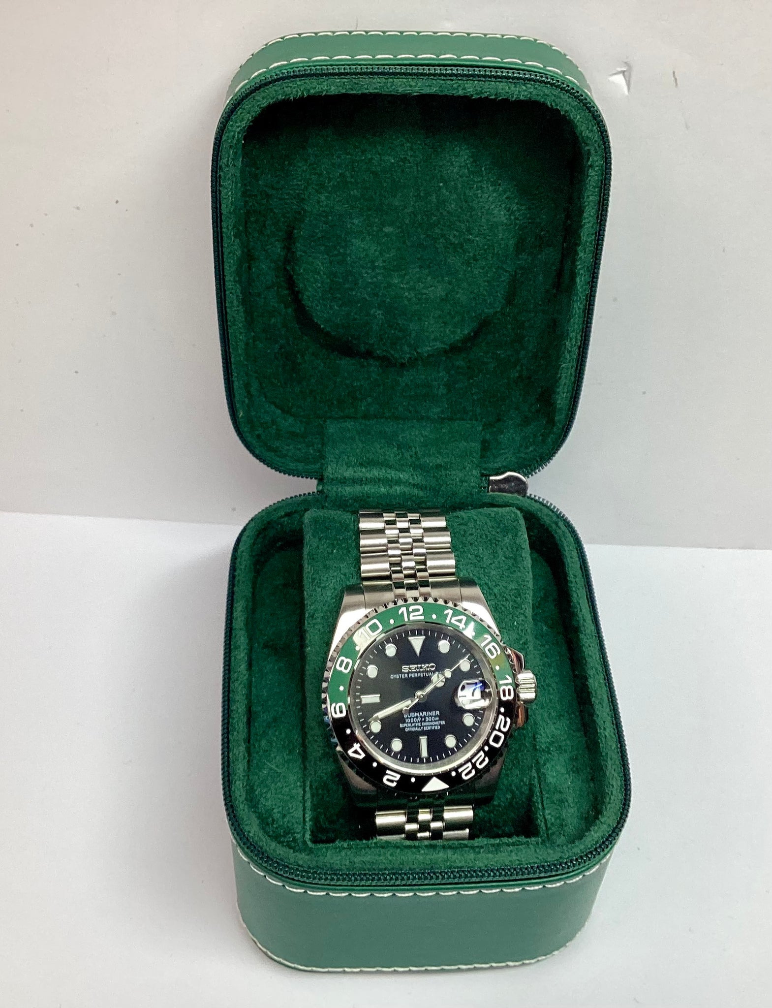 Seiko Watch with the date magnified 24 hour time around the edges.