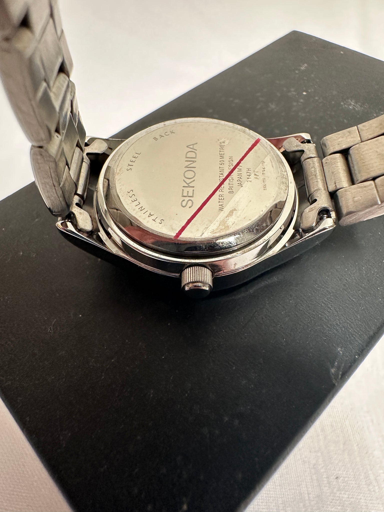 Go for timeless glamour with the Catherine Sekonda Midnight Star ladies watch. Featuring a dark blue dial, with gold tone hour markers and hands, this sophisticated timepiece is finished with a date window to take you from day to night in chic style.
