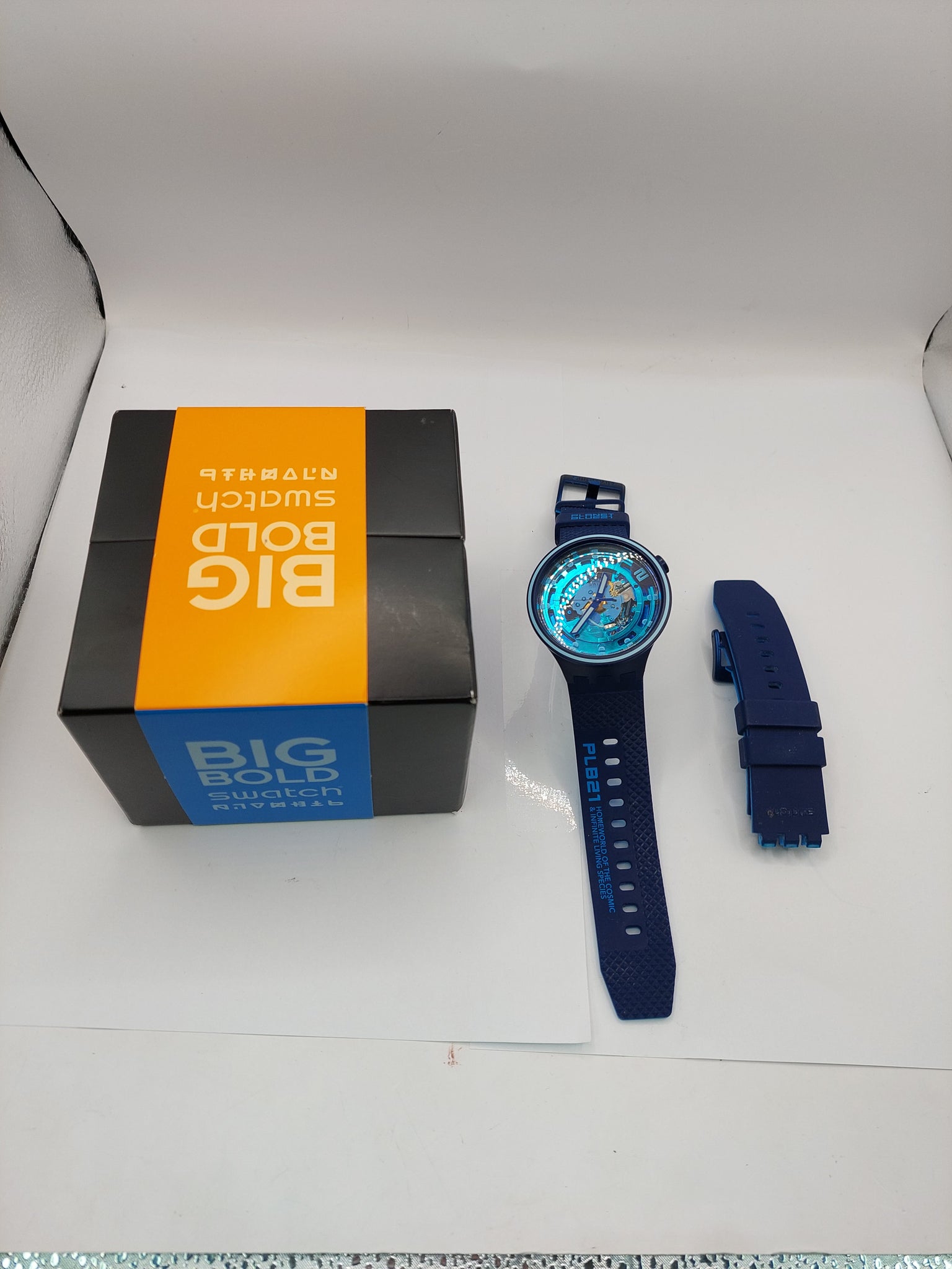 Swatch SR1130SW Blue Quartz Watch Boxed