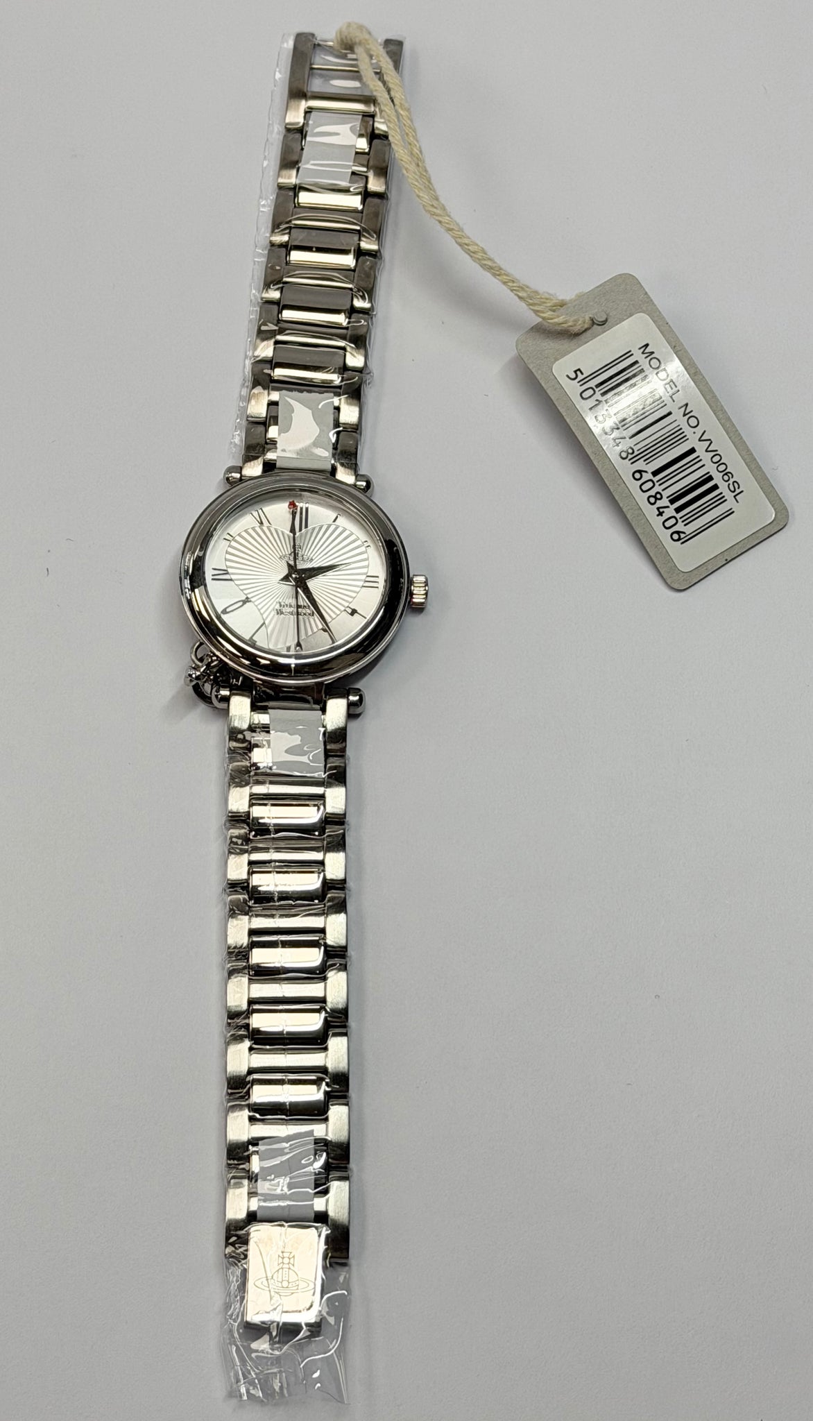 This beautful New Vivienne Westwood Watch has never been worn and still has the tag on. The box has slight signs of cosmetic wear.