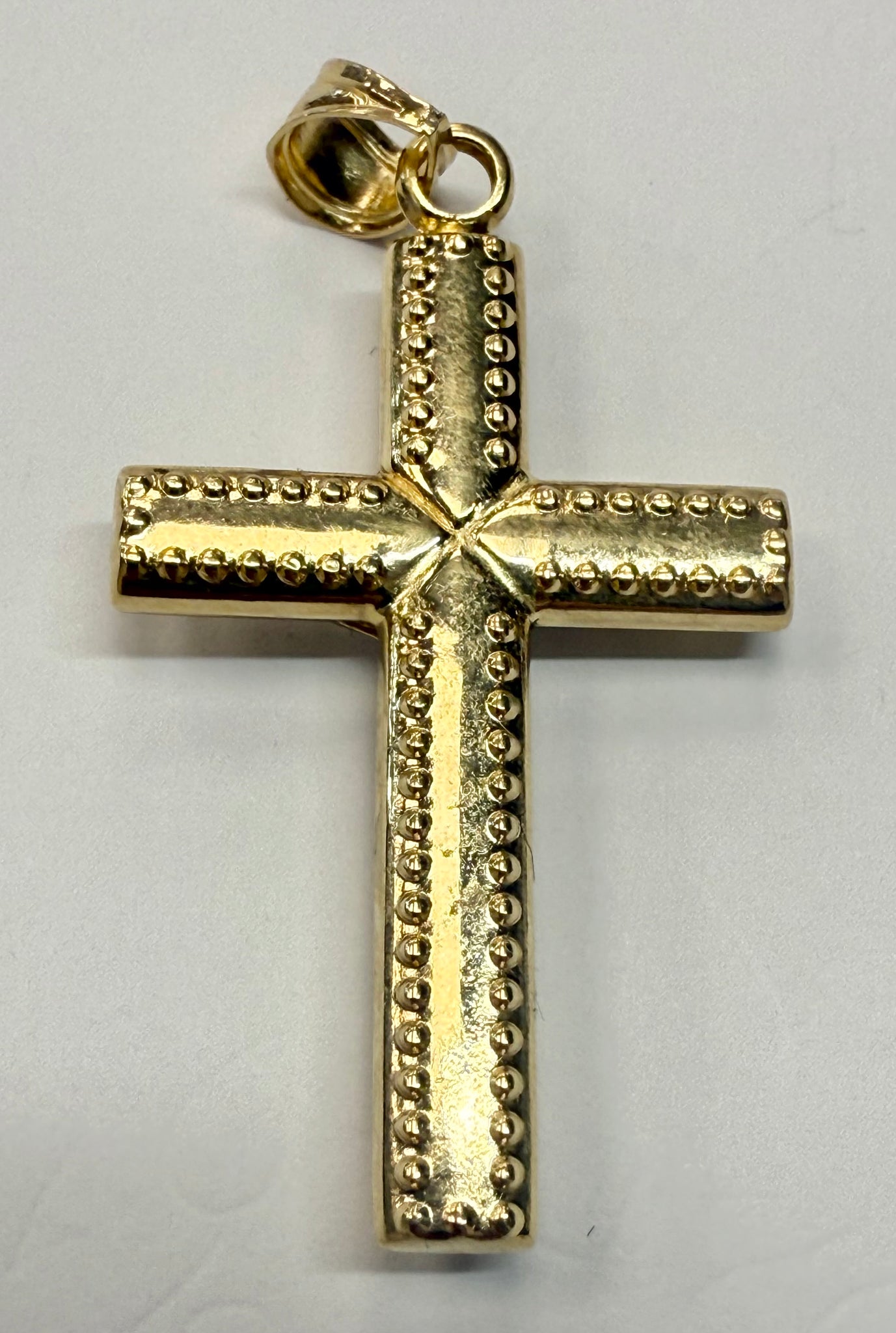 A beautiful 14ct gold cross pendant, weighs 3 grams and approx 5CM in length