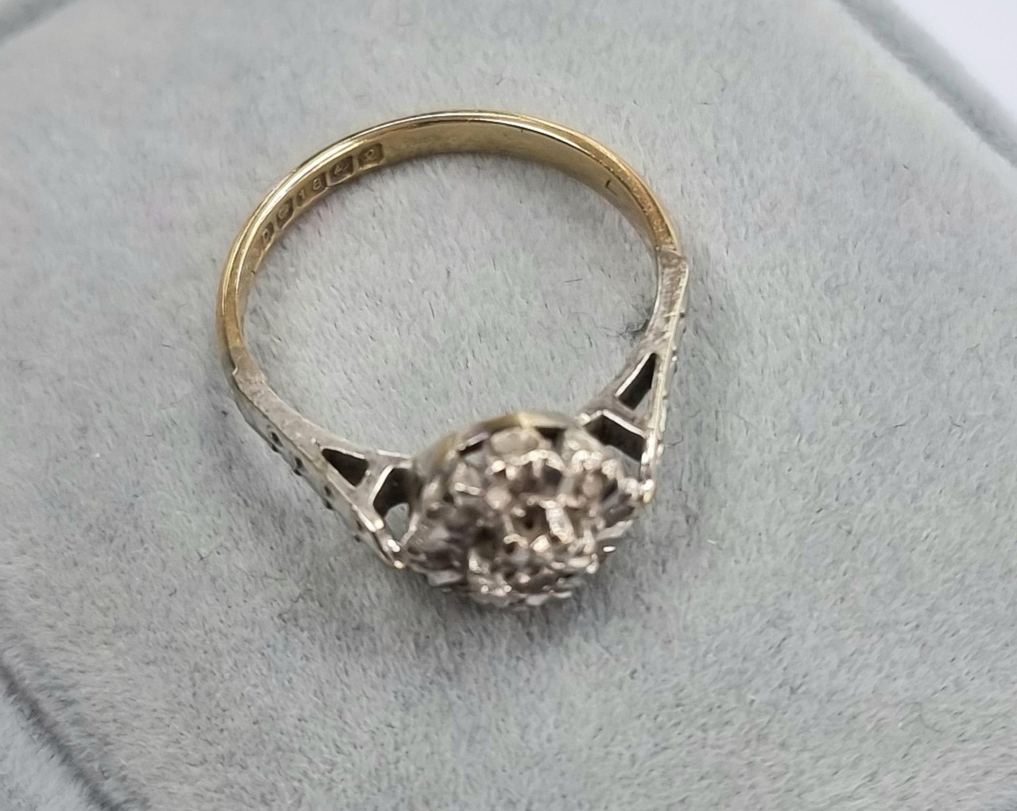 A lovely 18ct gold ring with small diamond stones, Size J1/2 weighing 2.89 grams