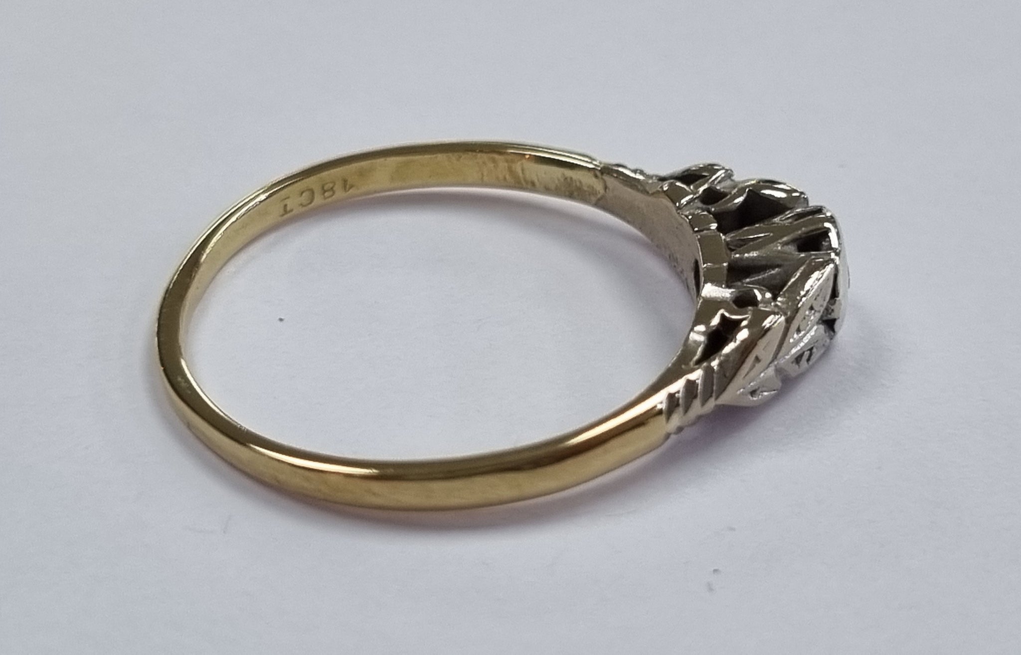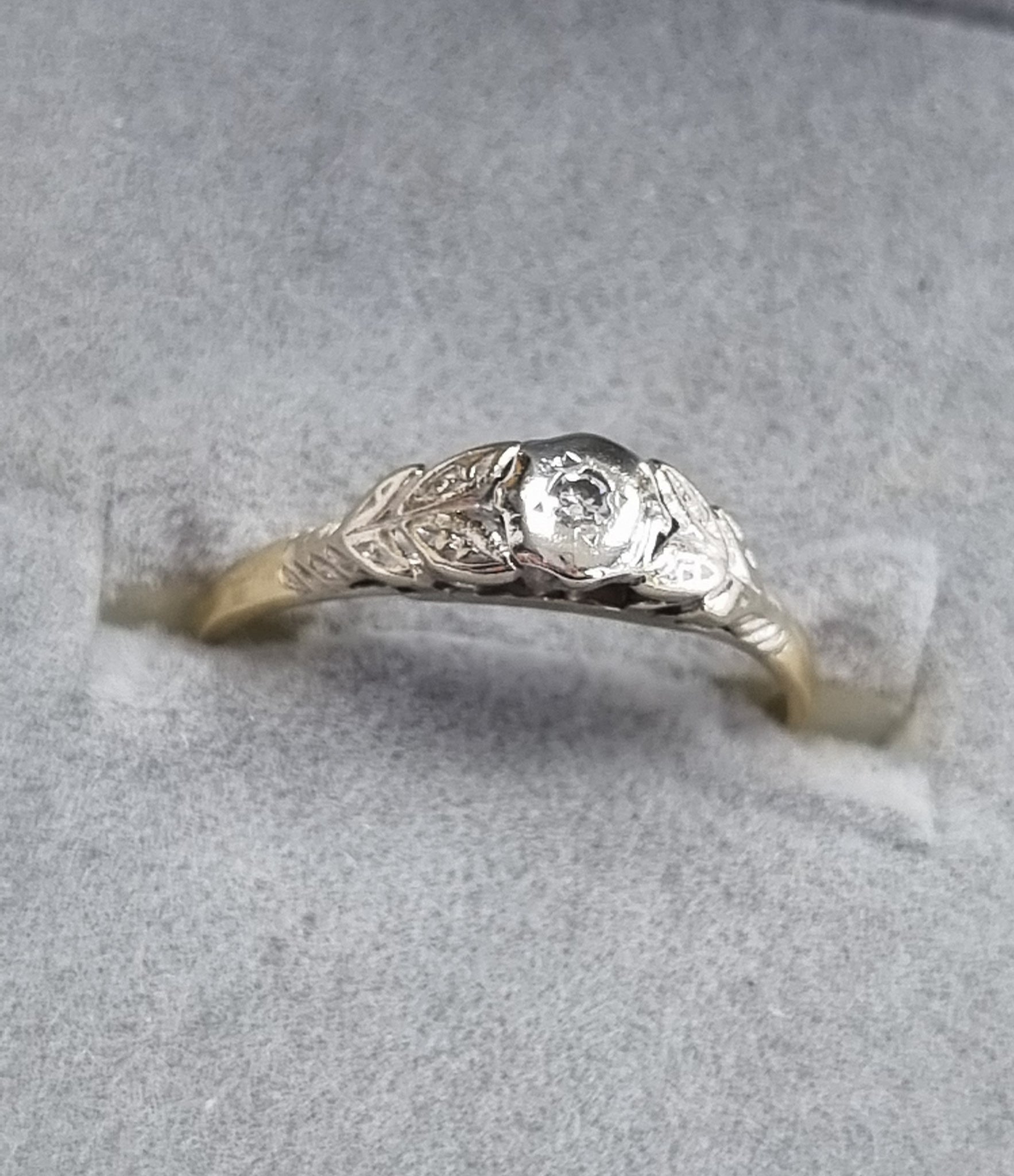 18ct gold ring with small diamond in centre. Comes in good condition, size M 1/2 weighs a total 2.28grams ************************ will be posted immediately