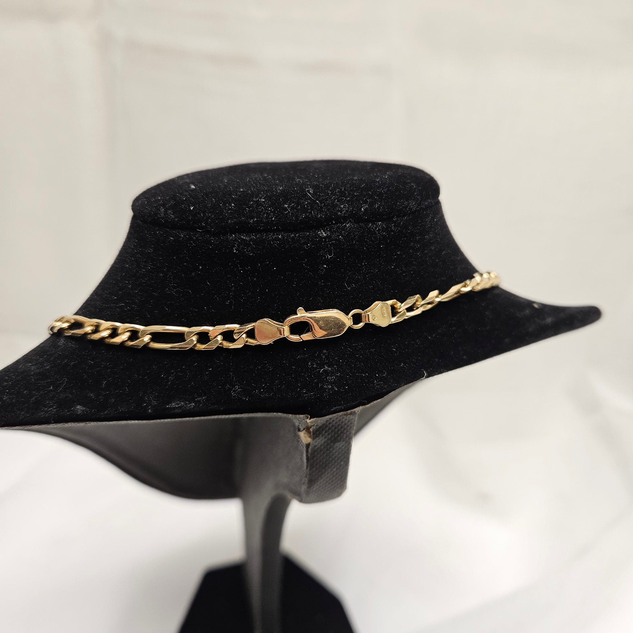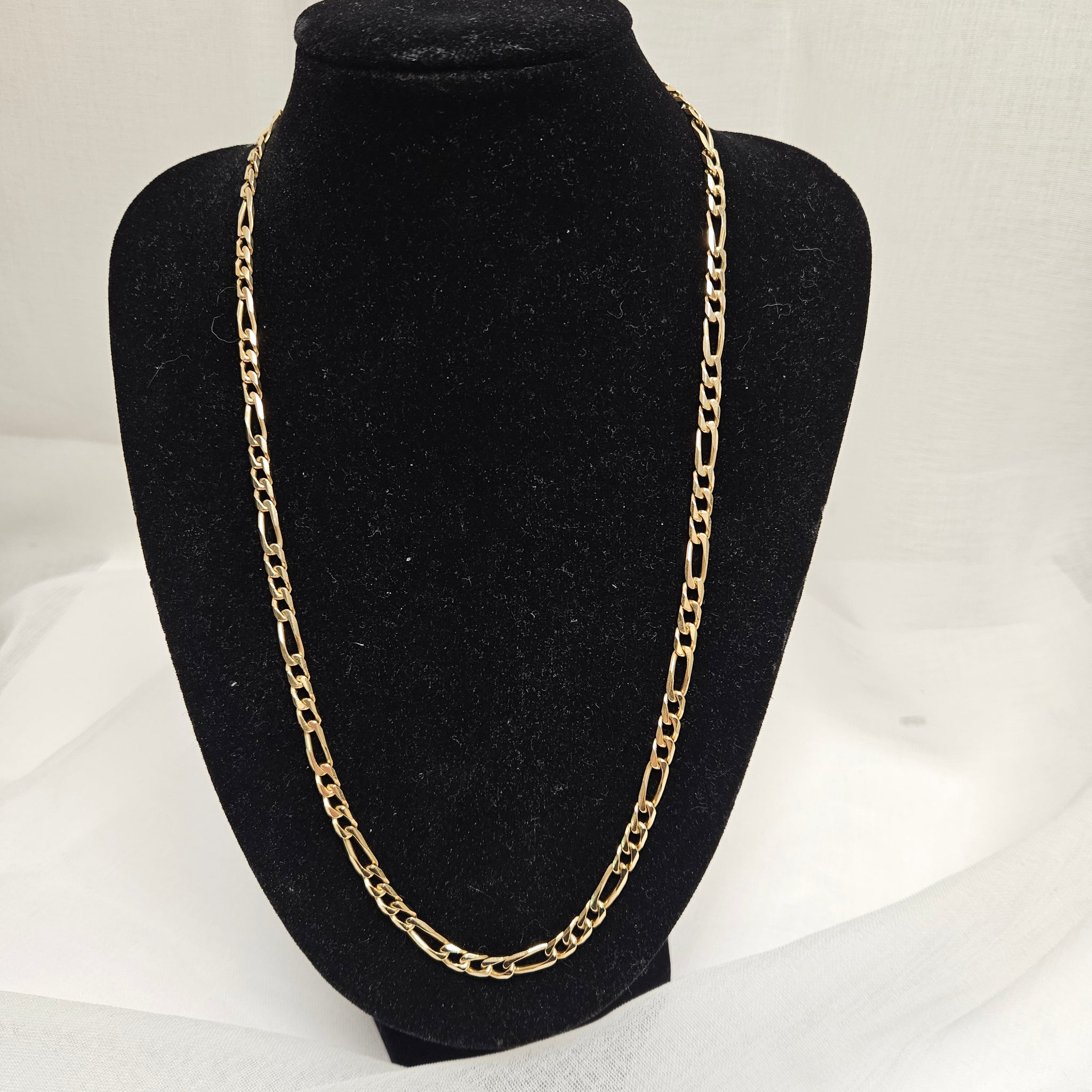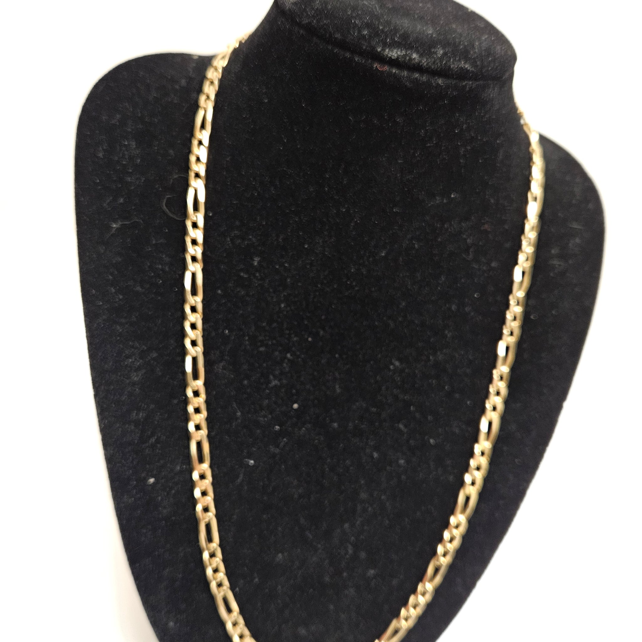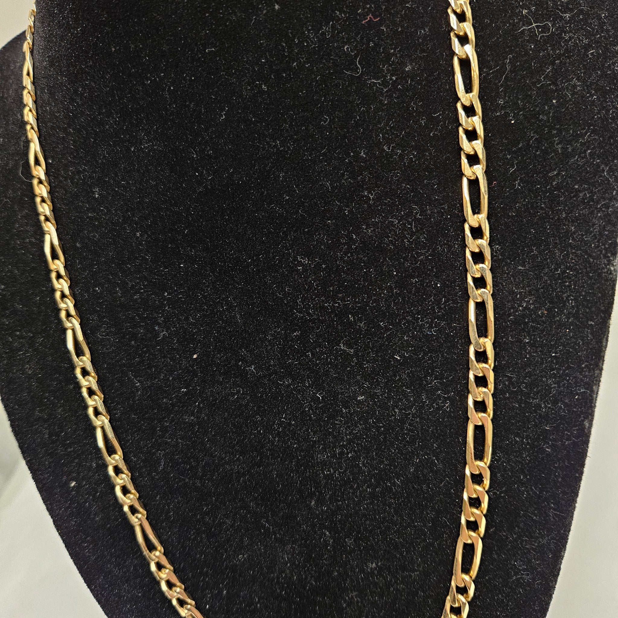 This stunning 21" Figaro chain is set in 9ct yellow gold and is a total weight of 22.5g. Will be sent tracked via Royal Mail and will be sent in a gift box.