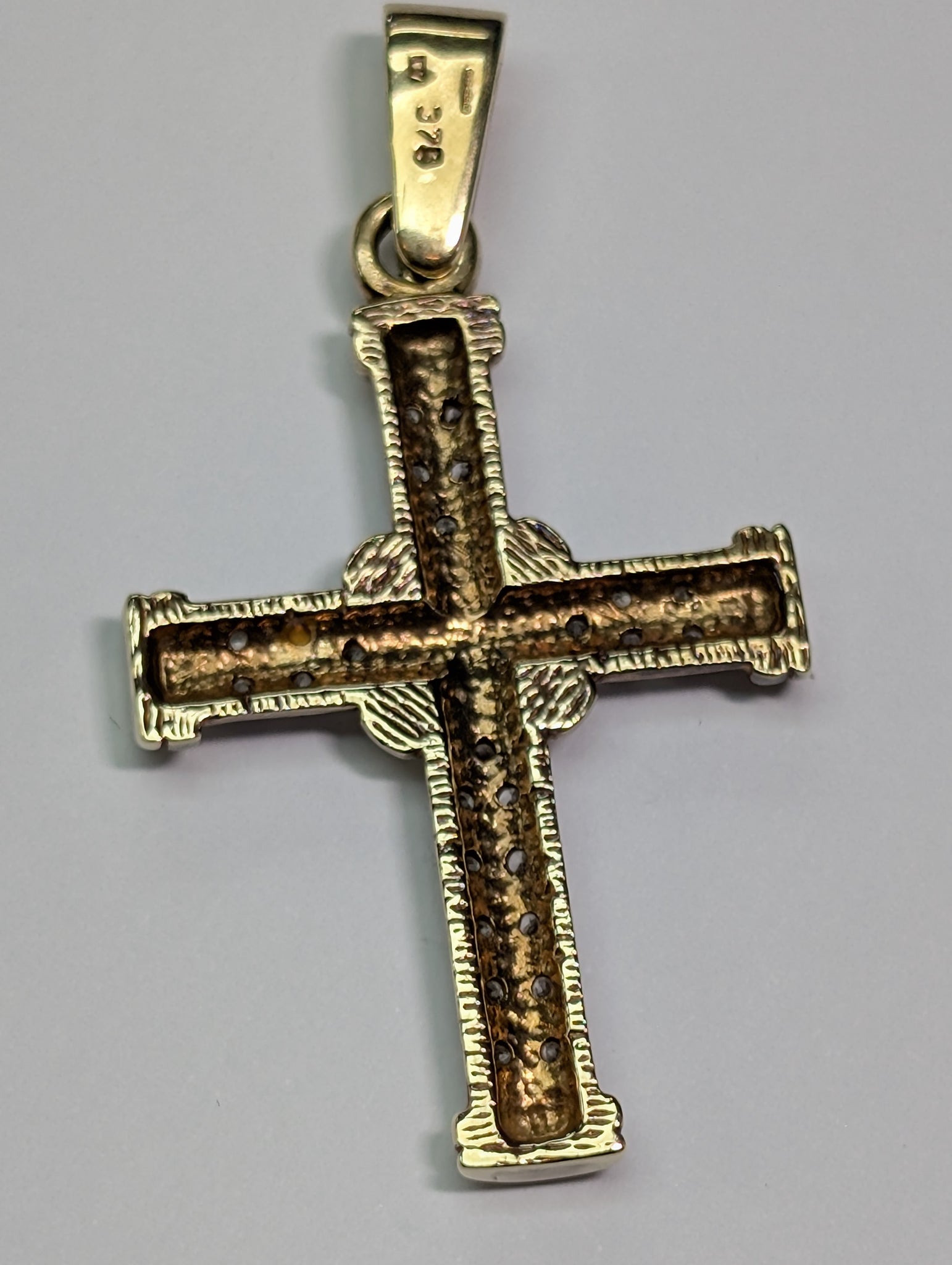 HERE WE HAVE A 9CT GOLD CZ STONED CROSS PENDANT. THIS WEIGHS 8.76G AND IS HALLMARKED 375. ** FOR ANY QUERIES PLEASE CALL OUR PRESTON STORE DIRECT MON-SAT 01772 204889