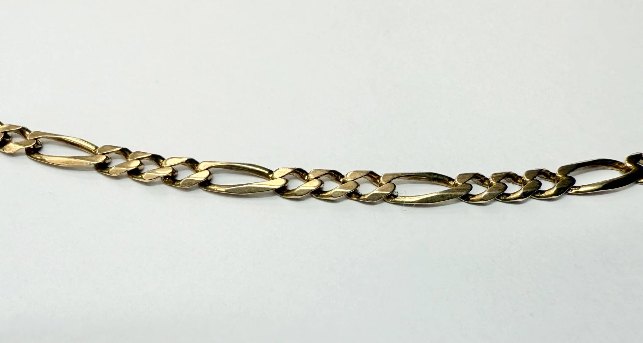 This beautiful 9ct gold Figaro chain is 21.5" and weighs 6.6 grams, In good condition