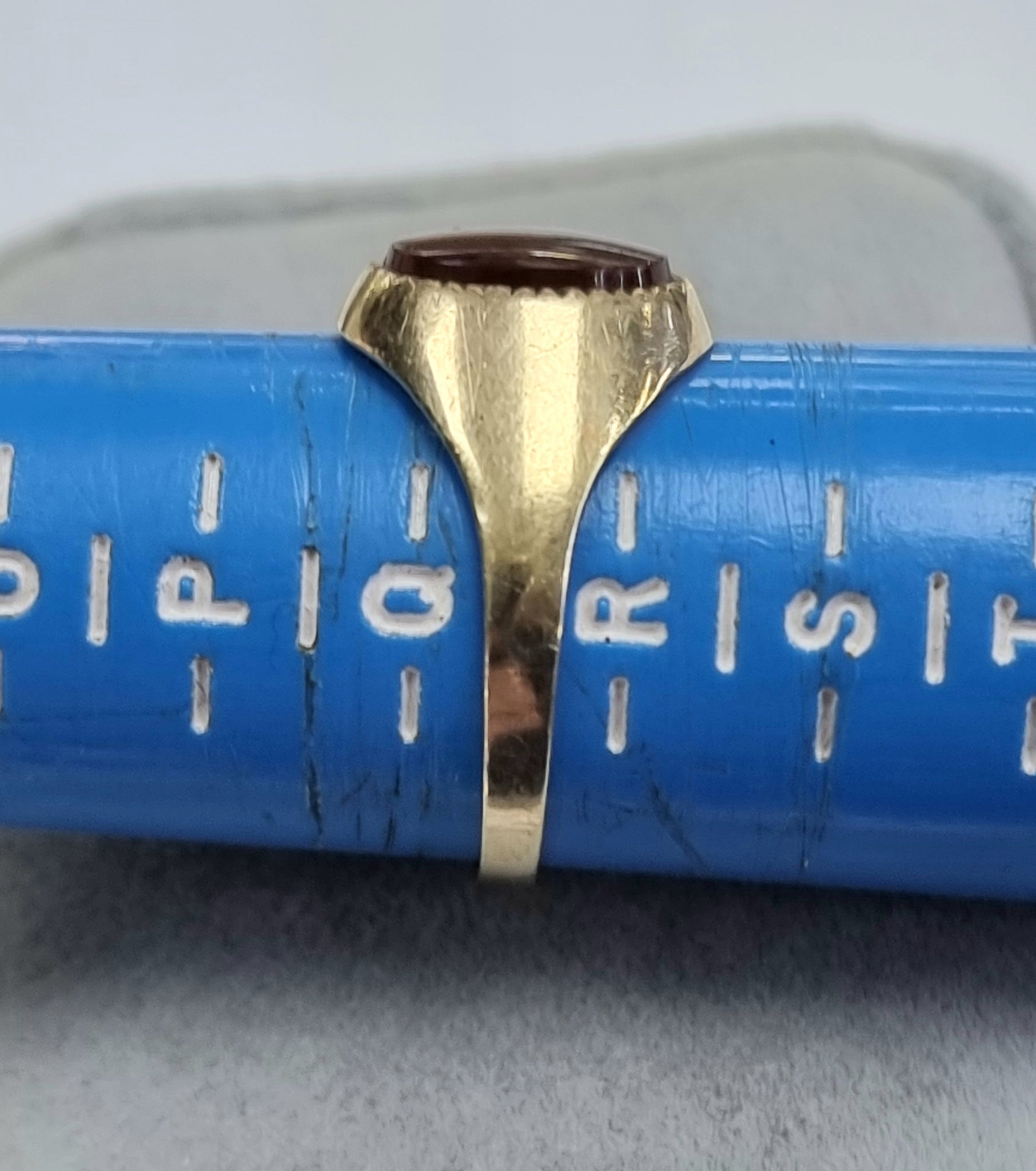A lovely ring with a red stone in 9ct size R weighing 2.14 grams