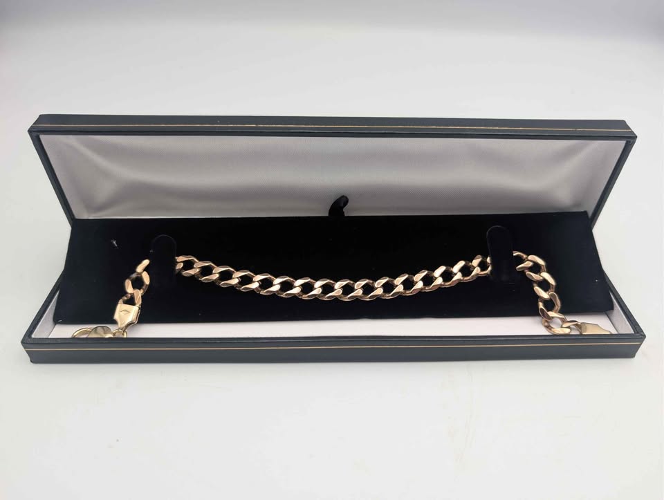 9ct Rose Gold 8mm Wide Curb Bracelet - 9" Long - 26.66 Grams
