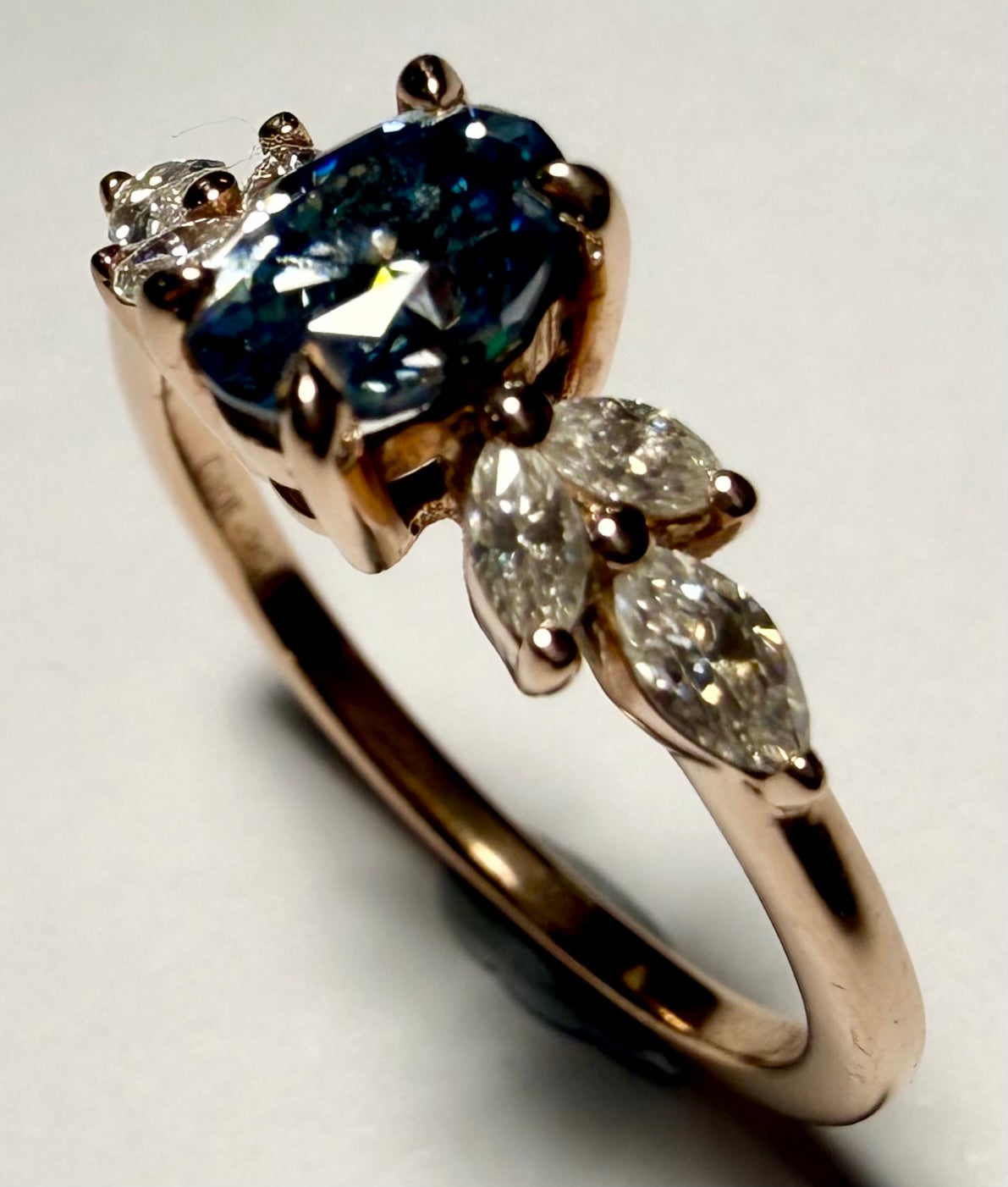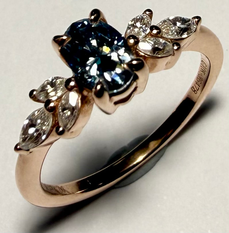 Here we have a 9CT gold diamond ring in a size J. ***This feature a blue centre stone with three clear stones set either side and weighs 1.82 grams. ***For any queries please call our Chorley store direct from Mon-Sat on 01257 752334.