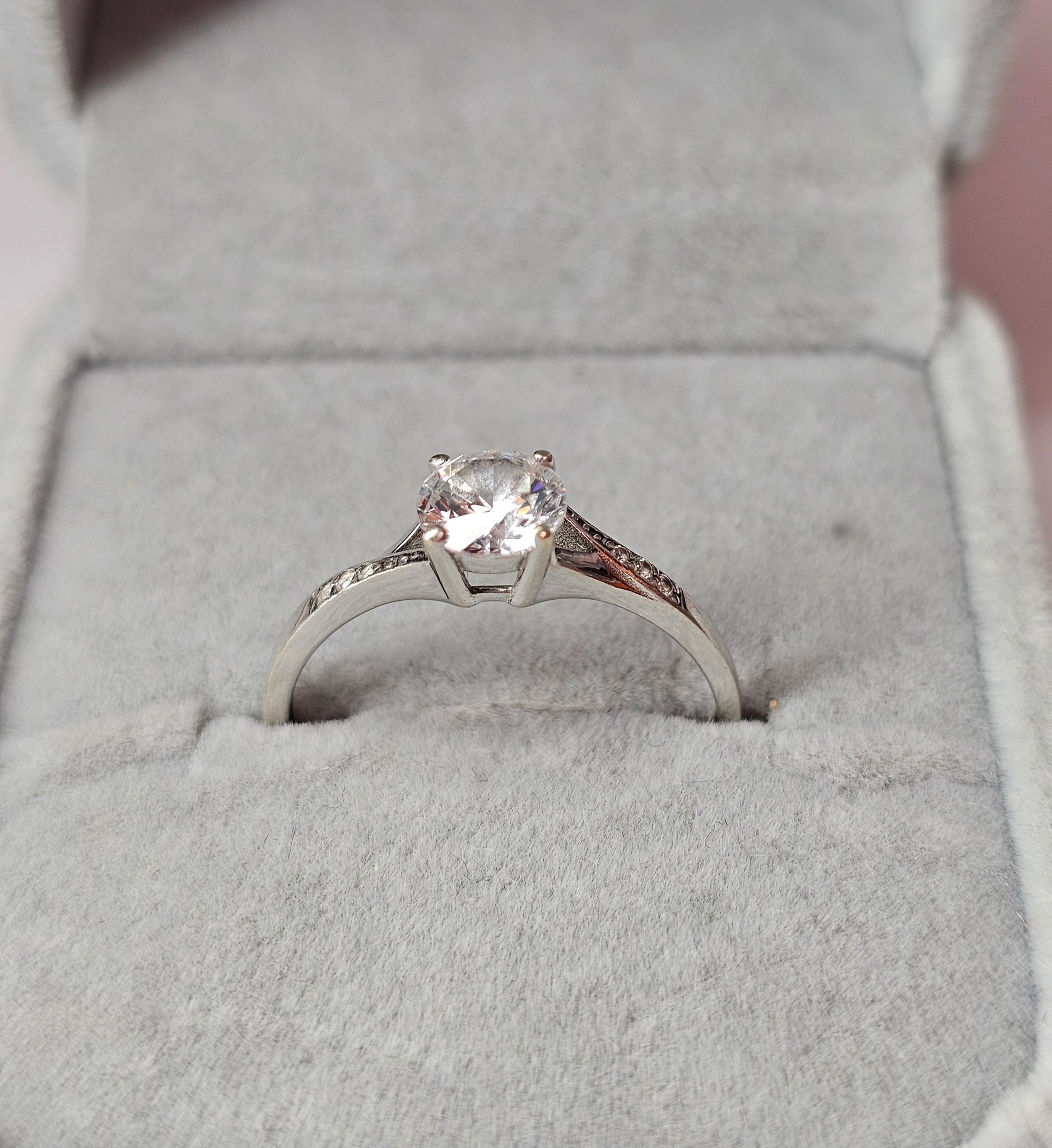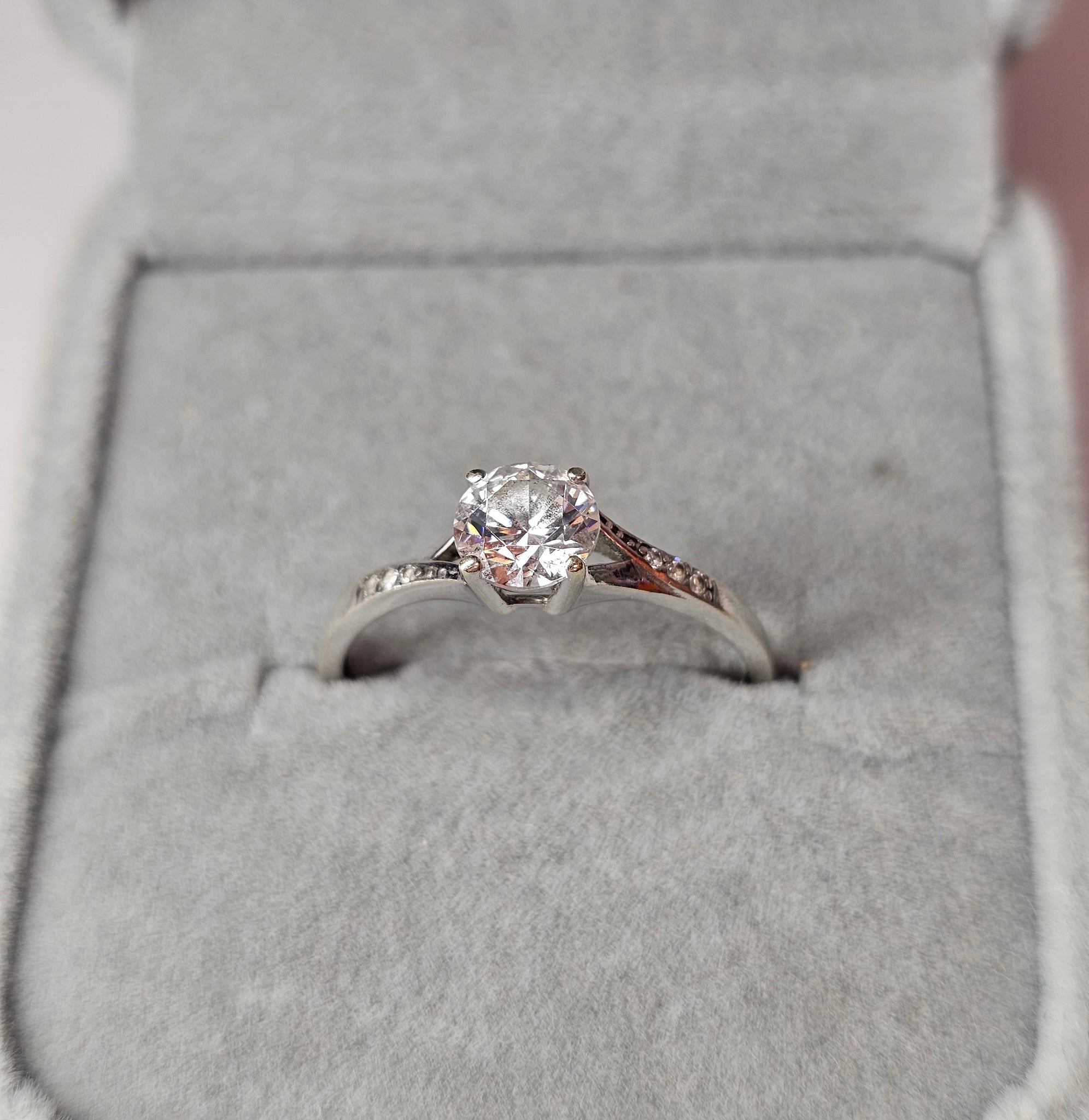 9ct White Gold CZ Solitaire Ring Size Q