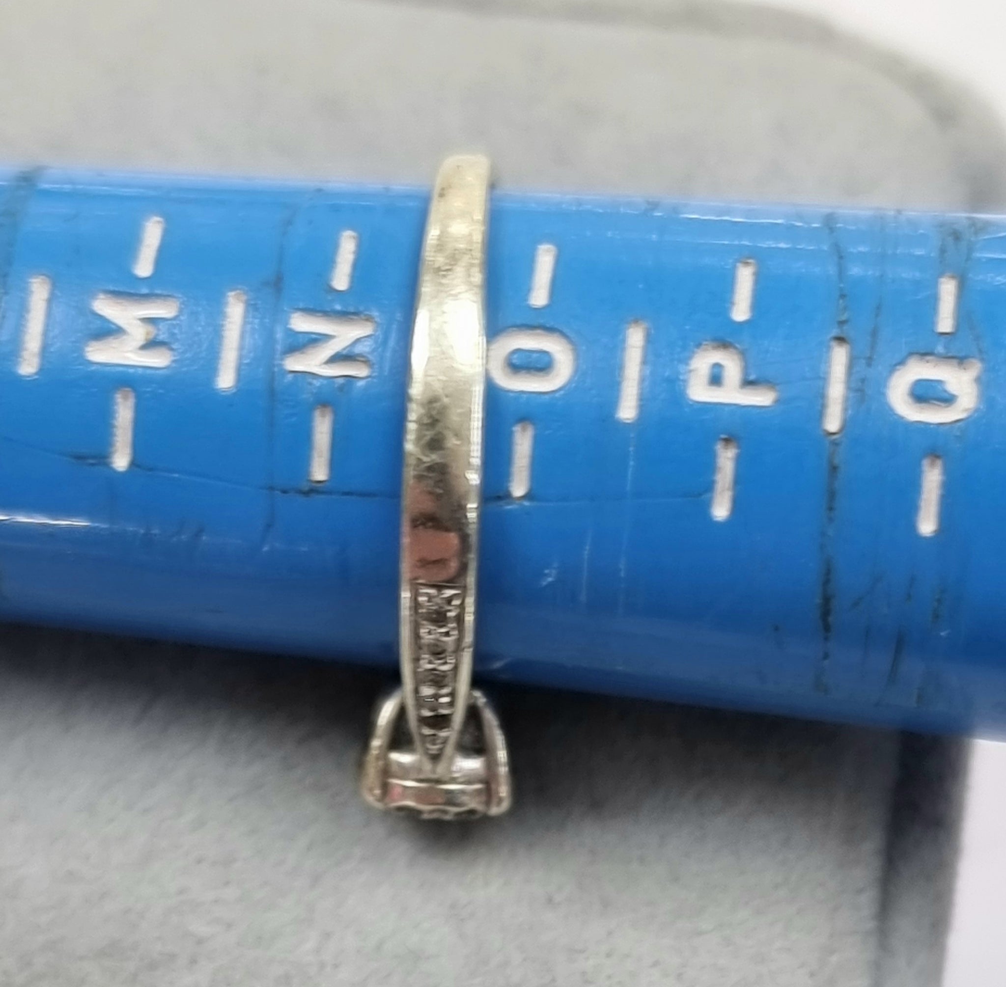 A very pretty 9ct White Gold Diamond Ring N1/2 weighing 2.35 grams. Acluster on stones with further stones down shank