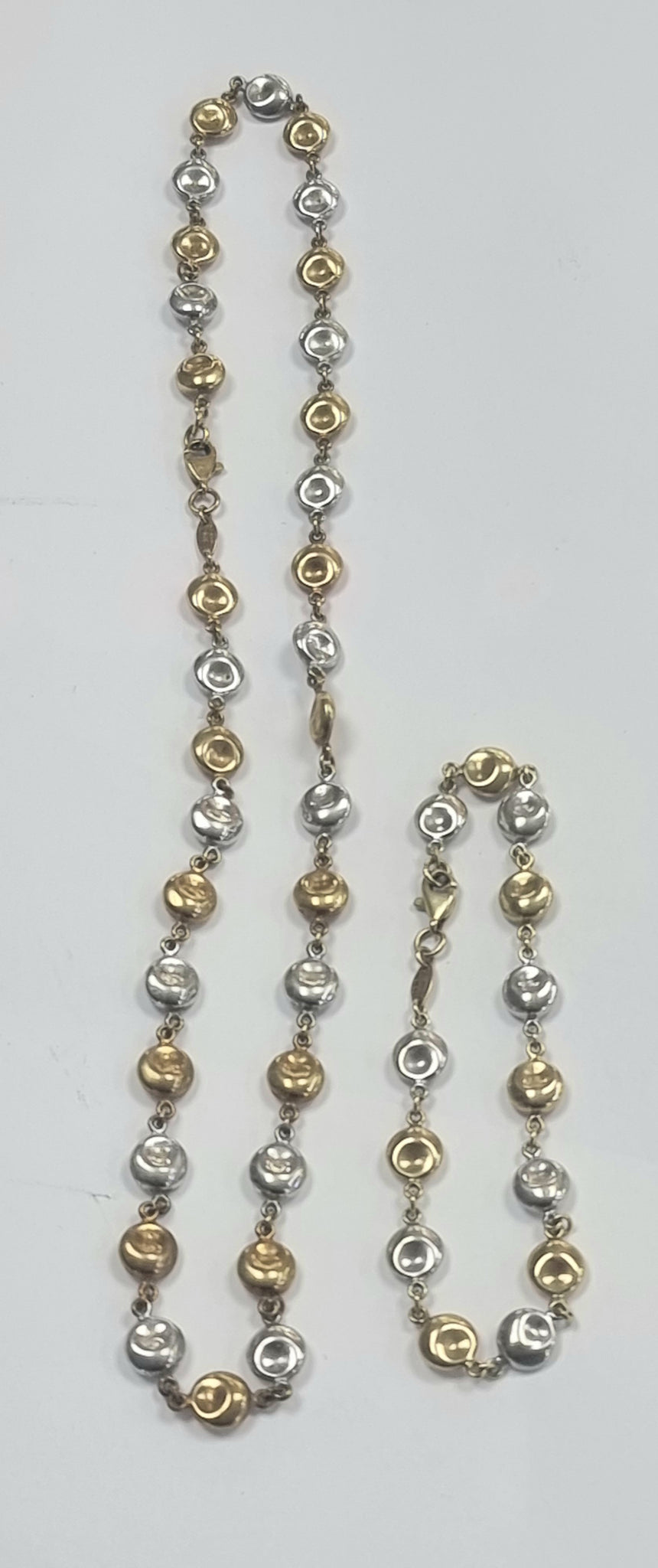 **A beautiful necklace and bracelet set in white and yellow gold **. **The total weight is 10.67 grams** **The necklace is 17" long weighs 7.48 grams ** **The Bracelet is 7.5 " long and weighs 3.19 grams**