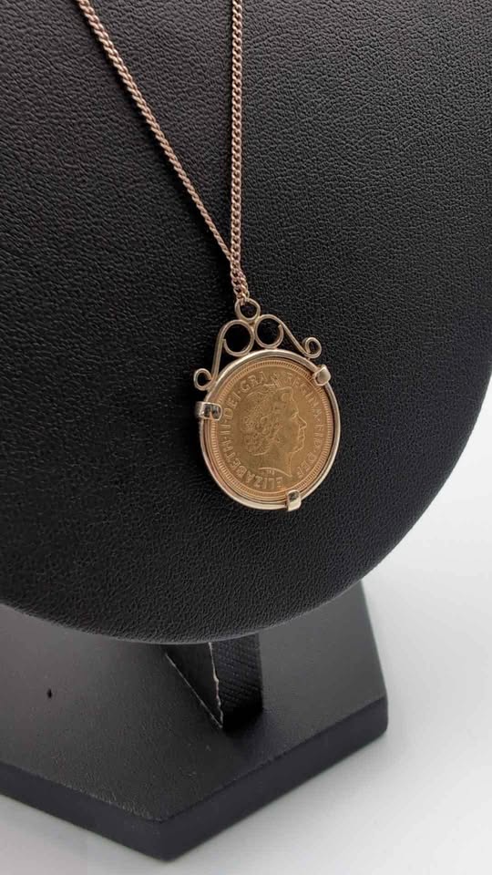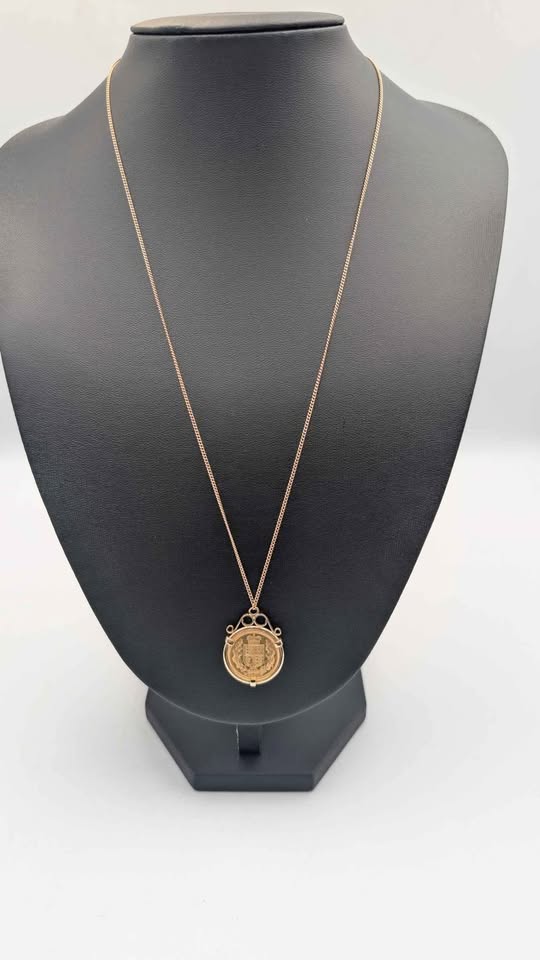 9ct Yellow Gold Chain With 22ct 2002 Elizabeth II Half Sovereign Coin in 9ct Mount - 7.86 Grams - 22" Long