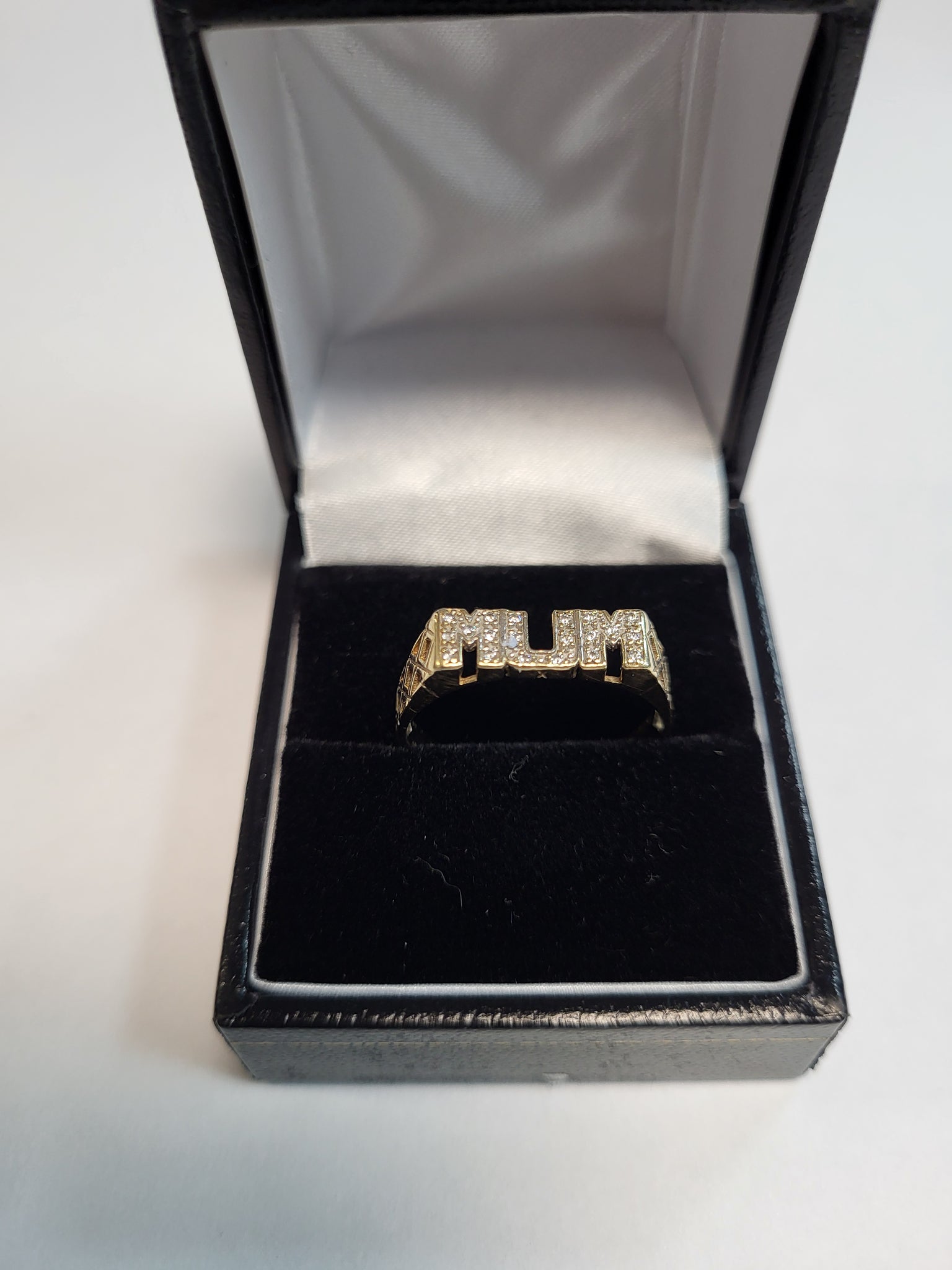 9ct Yellow Gold Mum Ring with Clear Stones - Size S - 2.1g
