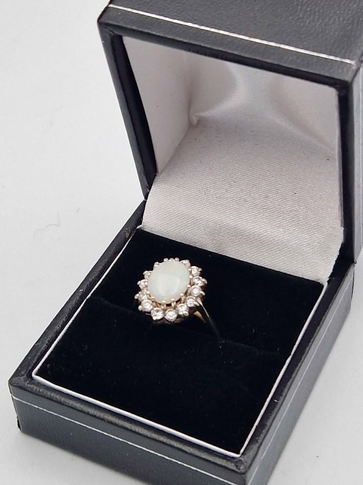 9ct Yellow Gold Opal & CZ Cluster Ring - Size J - 2.86 Grams