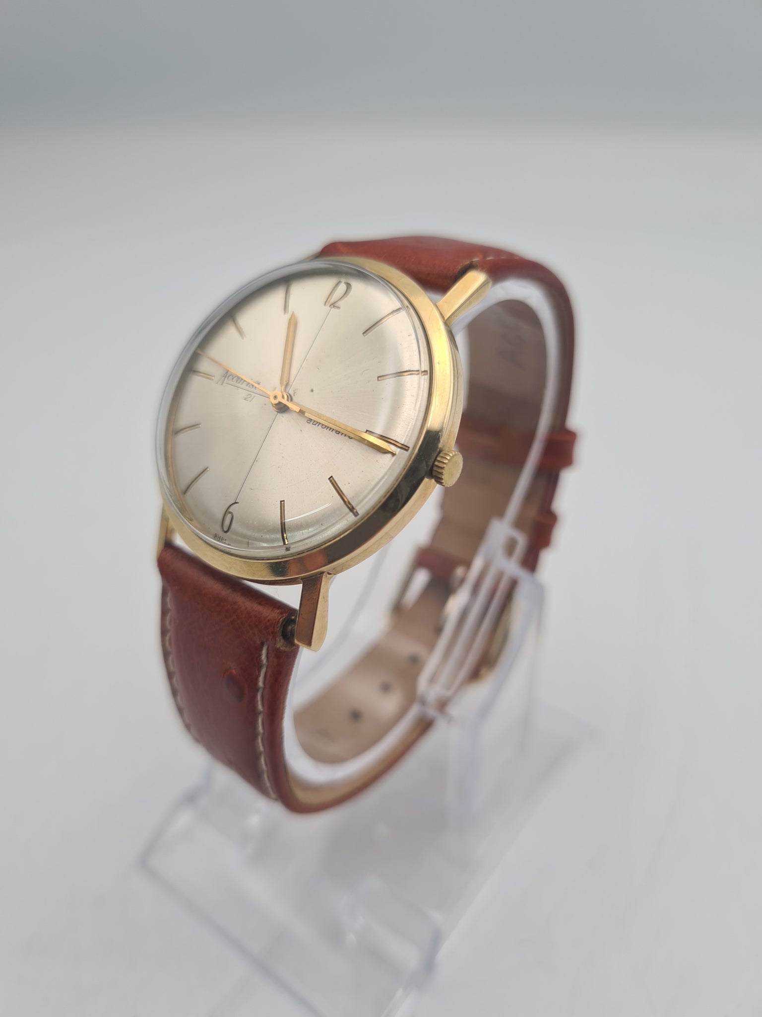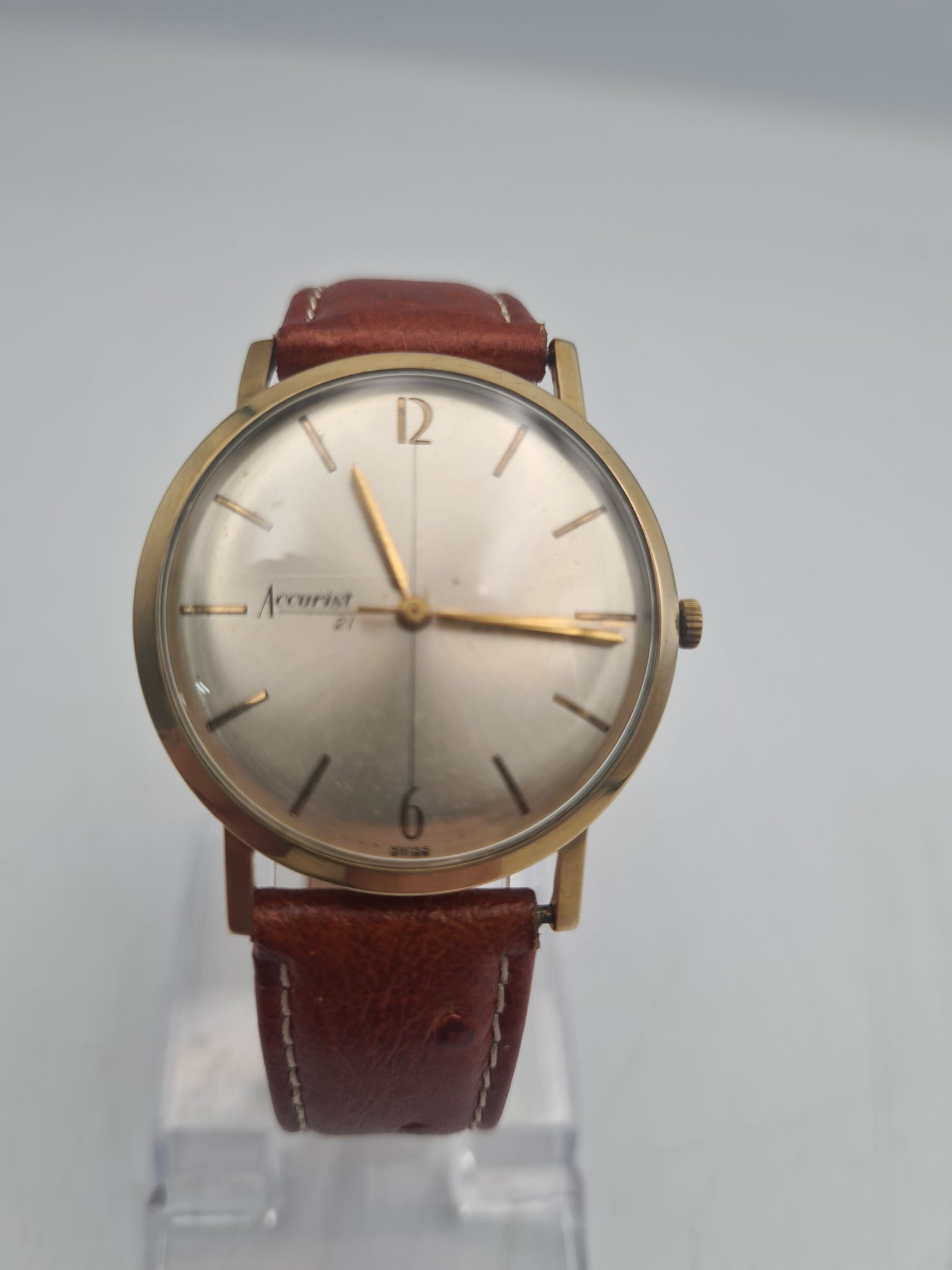 Accurist 9ct Gold Cased manual Wind watch with leather strap
