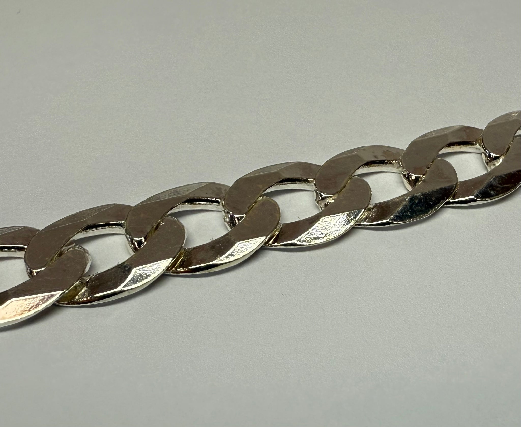 This beautiful brand new silver curb chain is now available, it has a weight of 30.47 grams and is 22" in length. 5mm width.