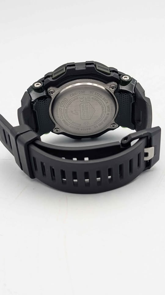 Casio G-Shock GBD-200, a rugged 46mm multifunction watch designed for men, built to withstand tough conditions with 20ATM (200m) water resistance. Featuring a durable black resin case and strap, it combines toughness with lightweight comfort. This watch includes multiple functions such as step tracking, Bluetooth connectivity, alarms, stopwatch, and countdown timer, making it ideal for fitness enthusiasts and everyday use. With G-Shock’s renowned shock resistance, it offers reliability and performance in extreme environments. A perfect companion for sports, outdoor adventures, or casual wear, the GBD-200 delivers both functionality and iconic G-Shock style.