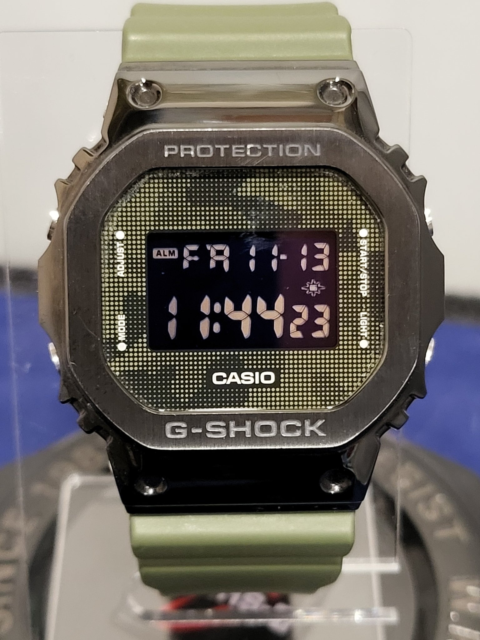 Introducing a new selection of models, that add metal parts to the design of the square-face 5600 Series G-SHOCK, the watch that has been revolutionizing personal timekeeping since 1983. These new modules use resin for the case interior and stainless steel for the bezel cover, creating a look of elegance while maintaining light weight and a great fit to wrist. Light-on-dark LCDs further add to the overall chic look of these timepieces. These new 5600 Series watches maintain the original G-SHOCK concept while improving overall timekeeping quality, designs, and comfort.